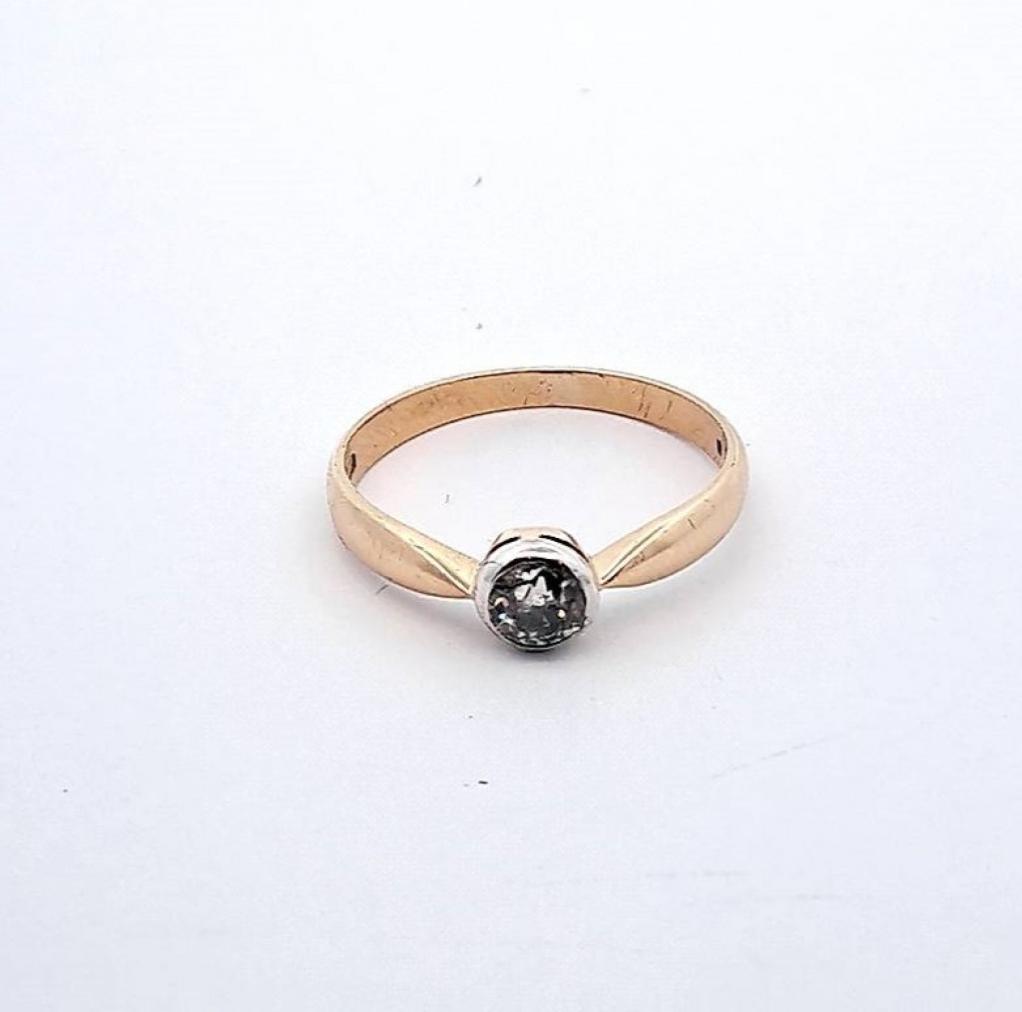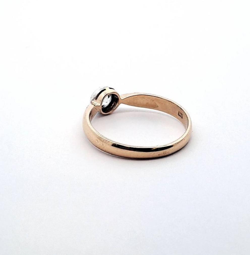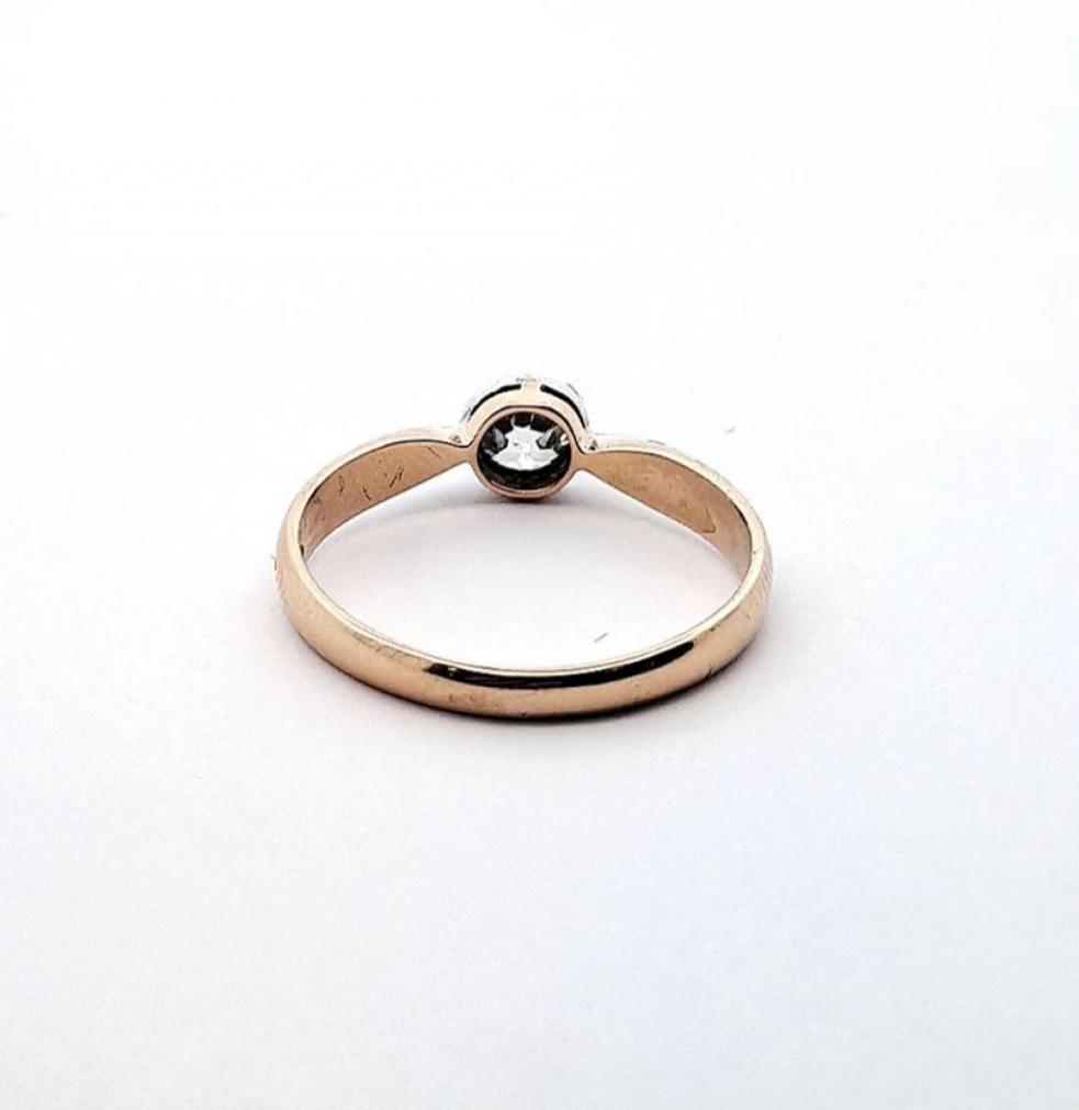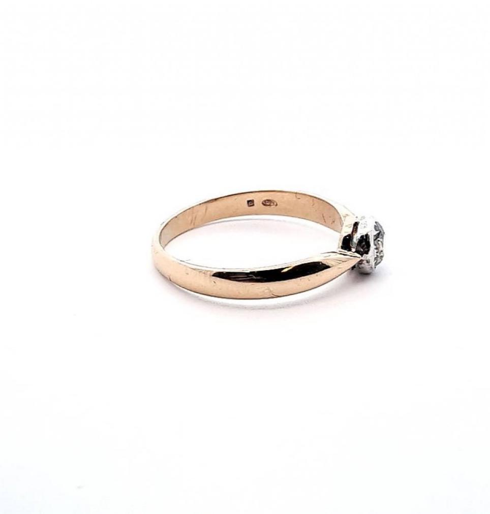 Prsten ze žlutého zlata o ryzosti 585/1000 s puncem čejky. Jednoduchá obroučka se směrem k hlavě prstenu zužuje. Hlavu prstenu tvoří diamant staroevropského brusu o velikosti cca 0,25 ct. Velikost prstenu je 55 a jeho váha je 2,34 g.