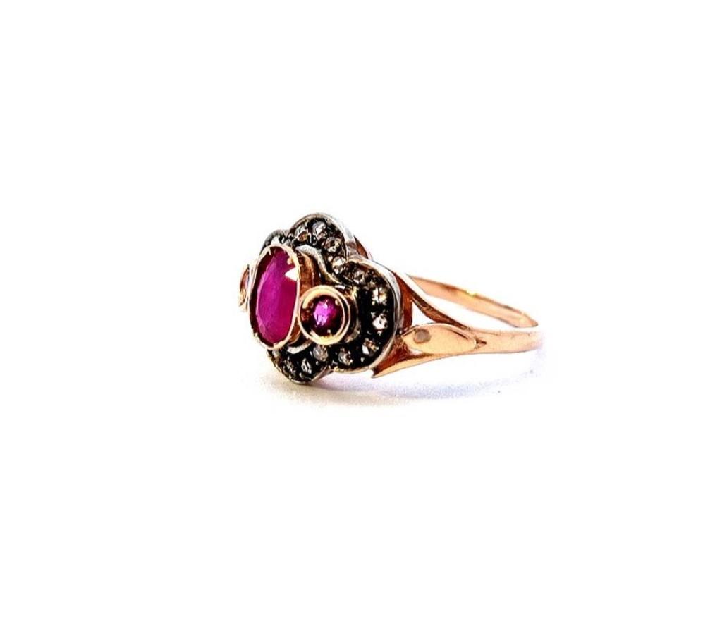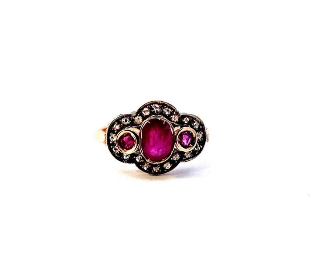 Starožitný prsten s diamanty a rubíny, vel. 54