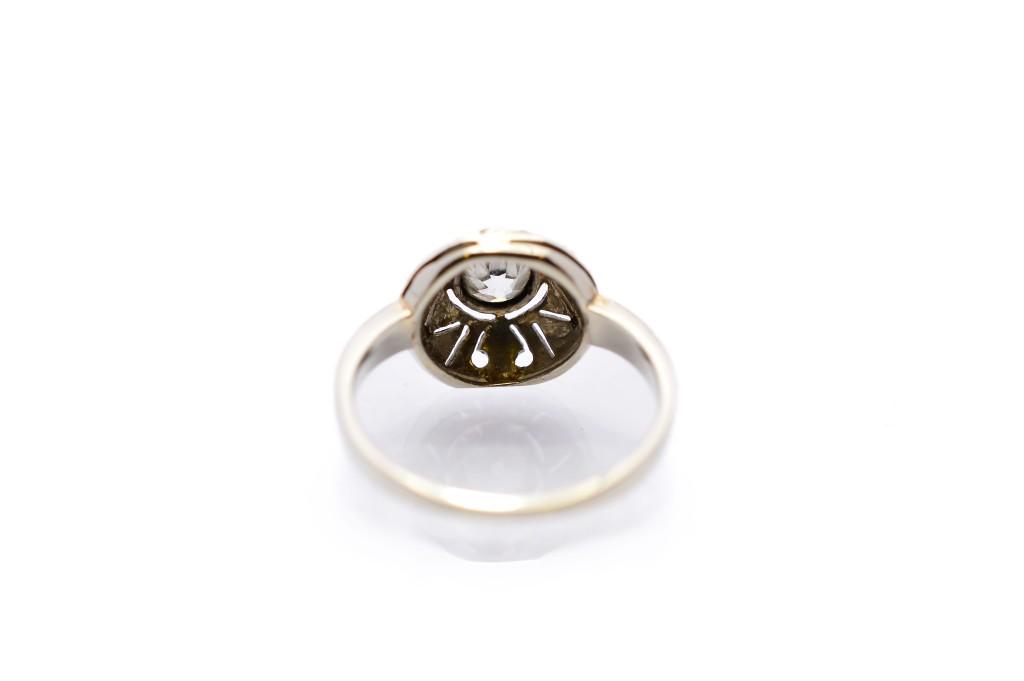 Starožitný zlatý prsten s diamantem, Art-deco, první republika, vel. 54