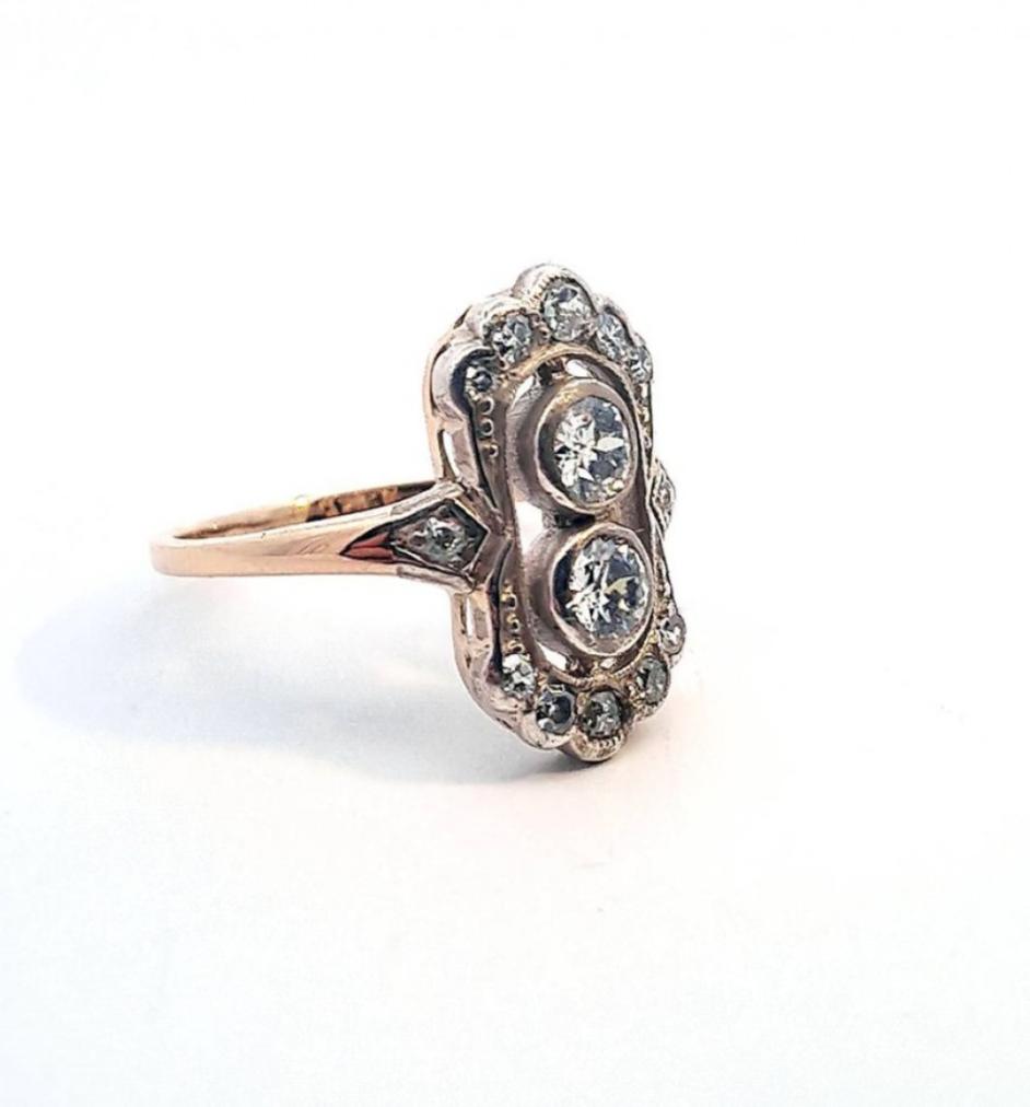 Starožitný zlatý prsten s diamanty, Rakousko-Uhersko, vel. 52