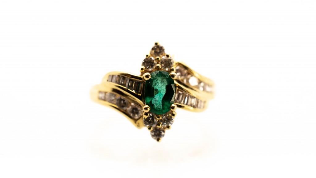 Zlatý prsten s brilianty a smaragdem, cca 2 ct, vel. 51