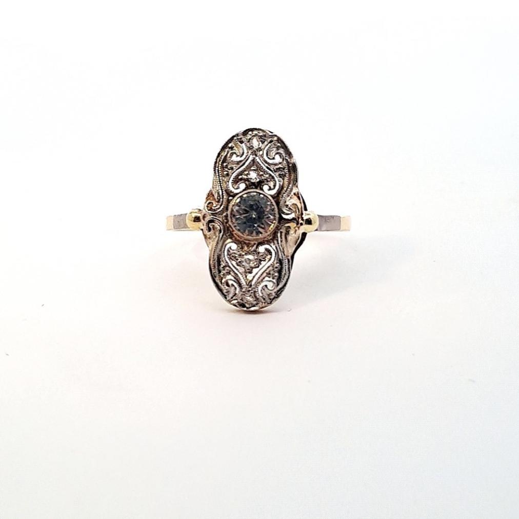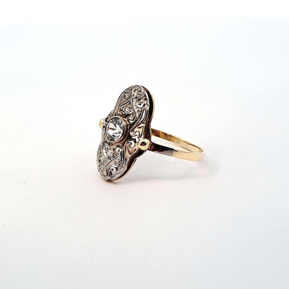 Zlatý prsten s diamantem, Art-deco, vel. 55