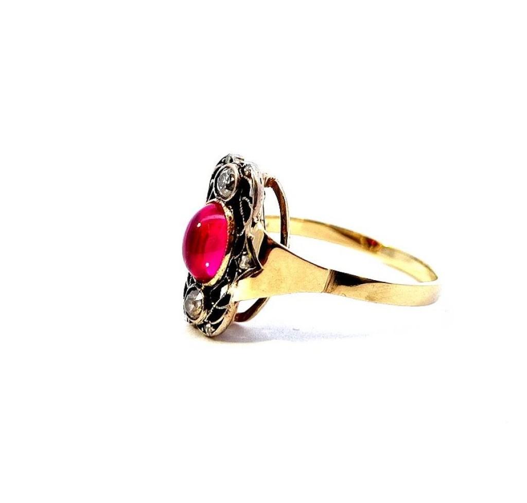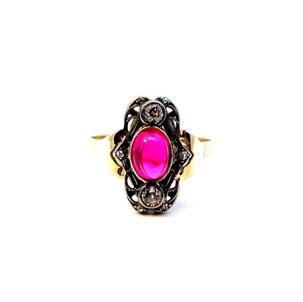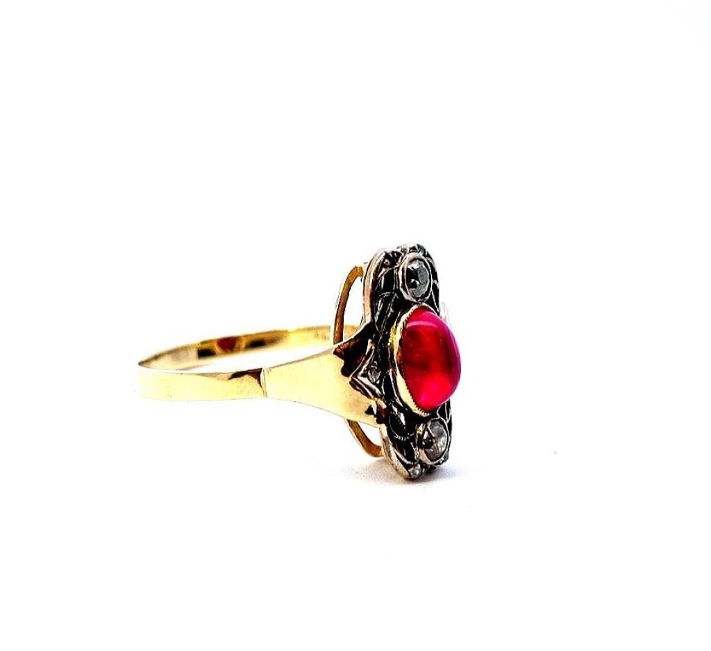 Zlatý prsten s rubínem a diamanty, vel. 62