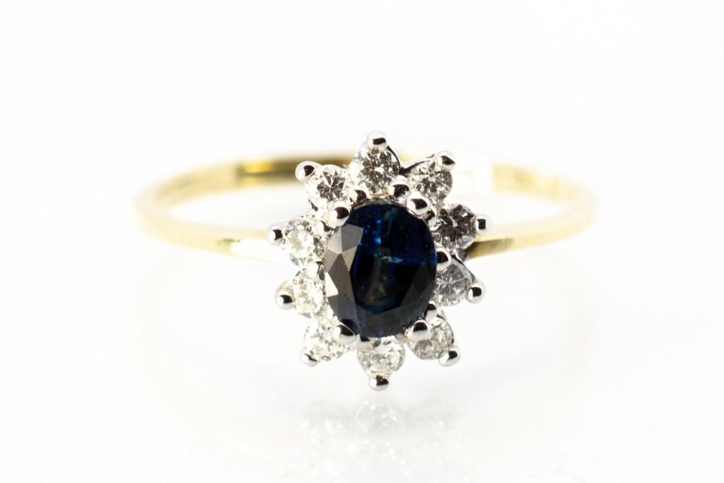 Zlatý prsten o ryzosti 585/1000, váha 1,70 g, punc lyra, velikost 51, diamant briliantového brusu 10 kusů, celkem cca 0,2 ct.