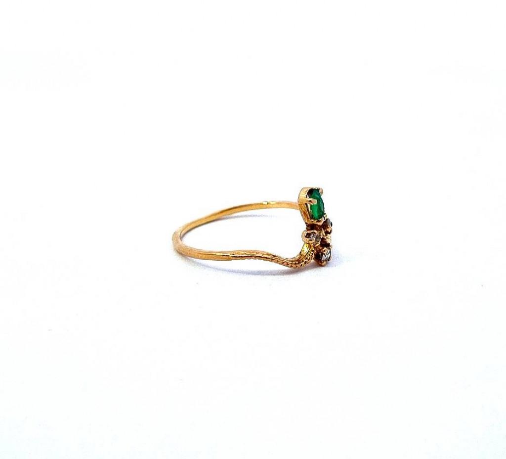 Zlatý prsten se smaragdem a diamanty, vel. 49
