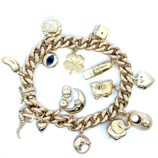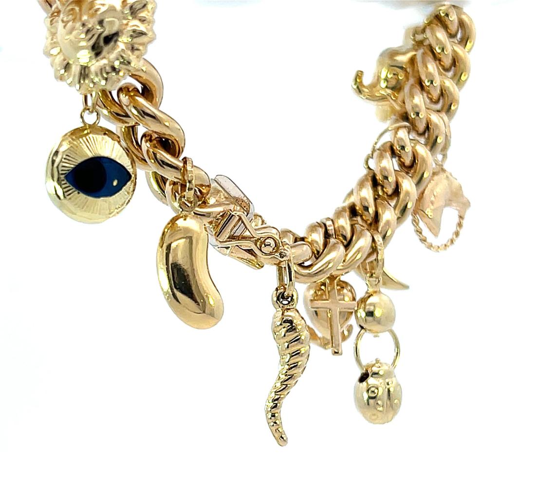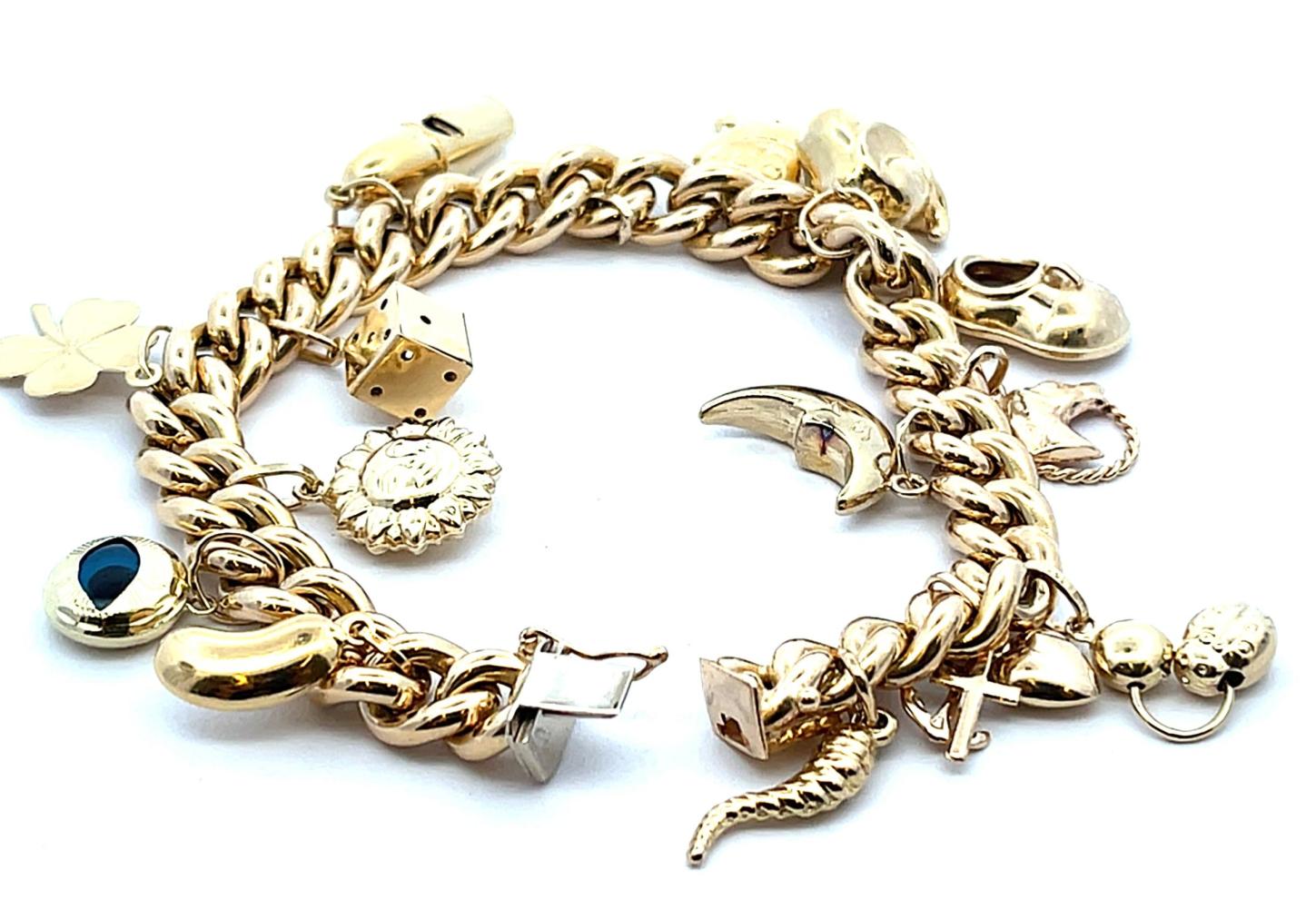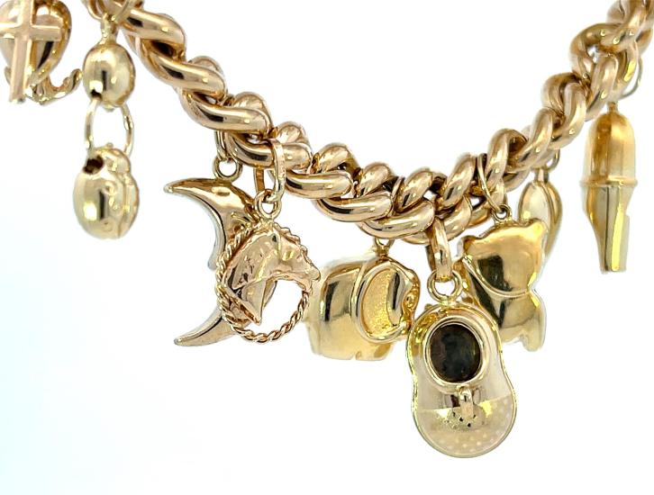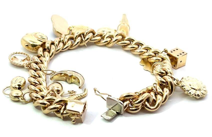 Masivní zlatý náramek s přívěsy, žebrák, 35,17 g