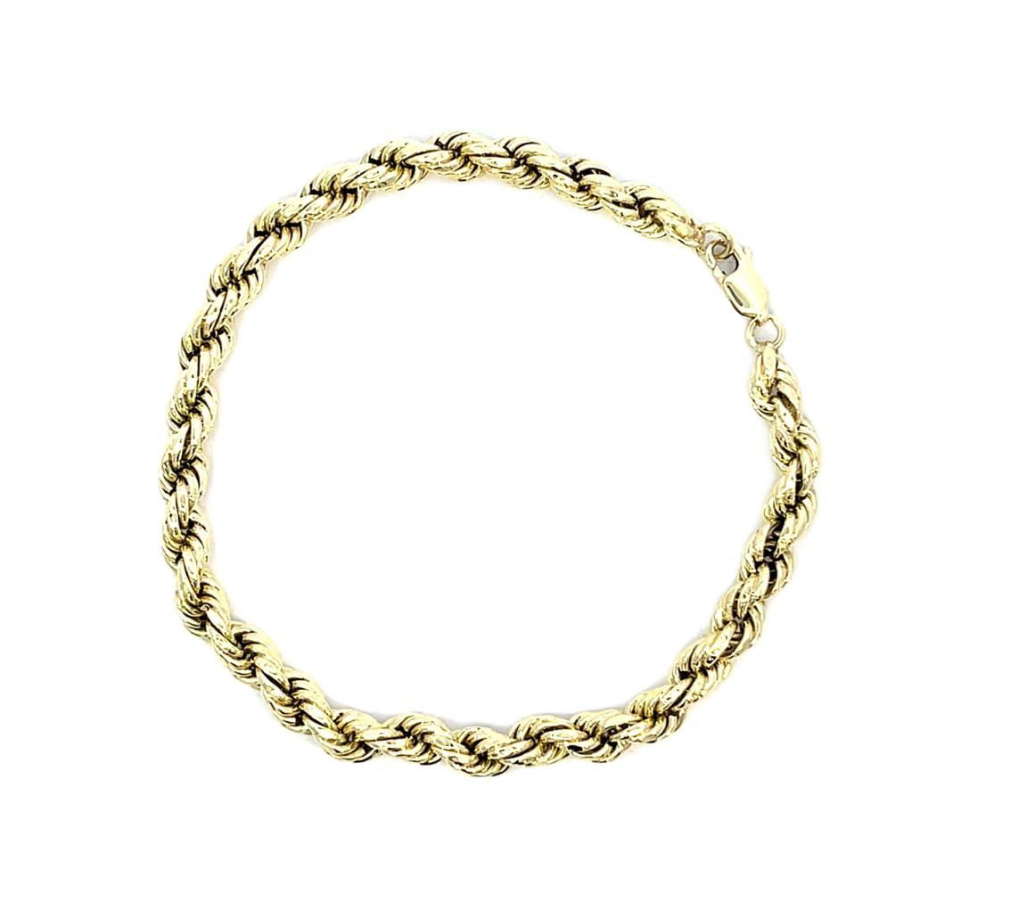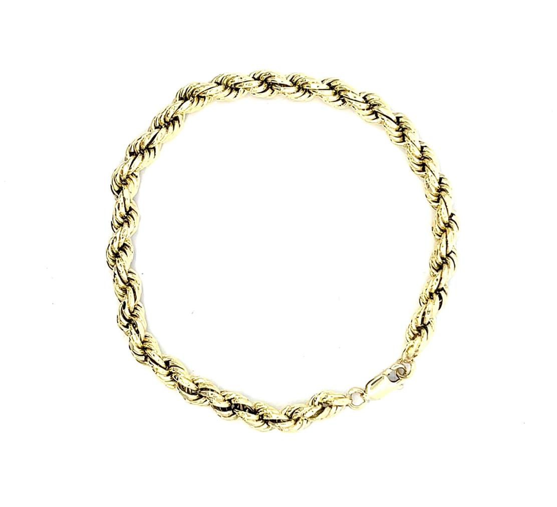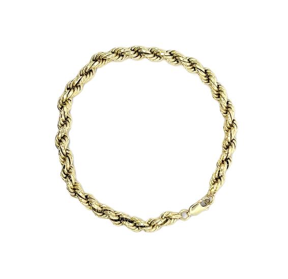 Zlatý náramek o ryzosti 585/1000, punc lvíček. Váha 8,70 g, délka 20,3 cm, v nejširším bodě 5 mm.
