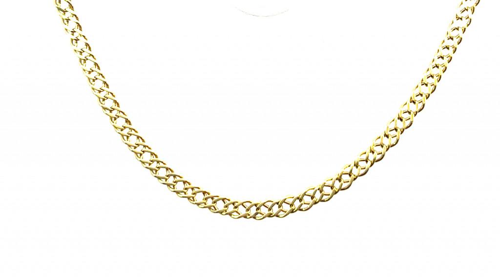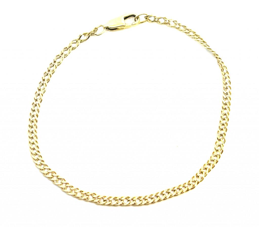 Zlatý náramek o ryzosti 585/1000, punc labuť. Váha 3,06 g, délka 19 cm, v nejširším bodě 3 mm.