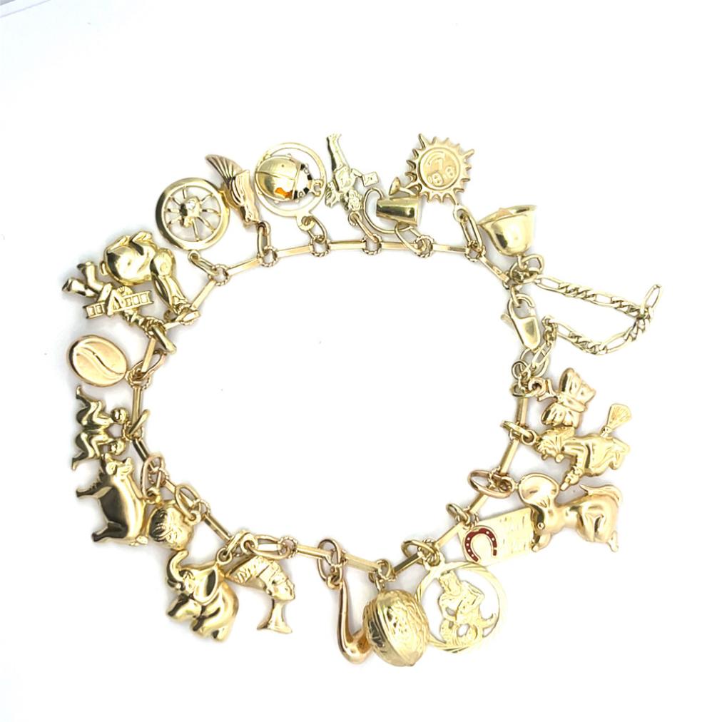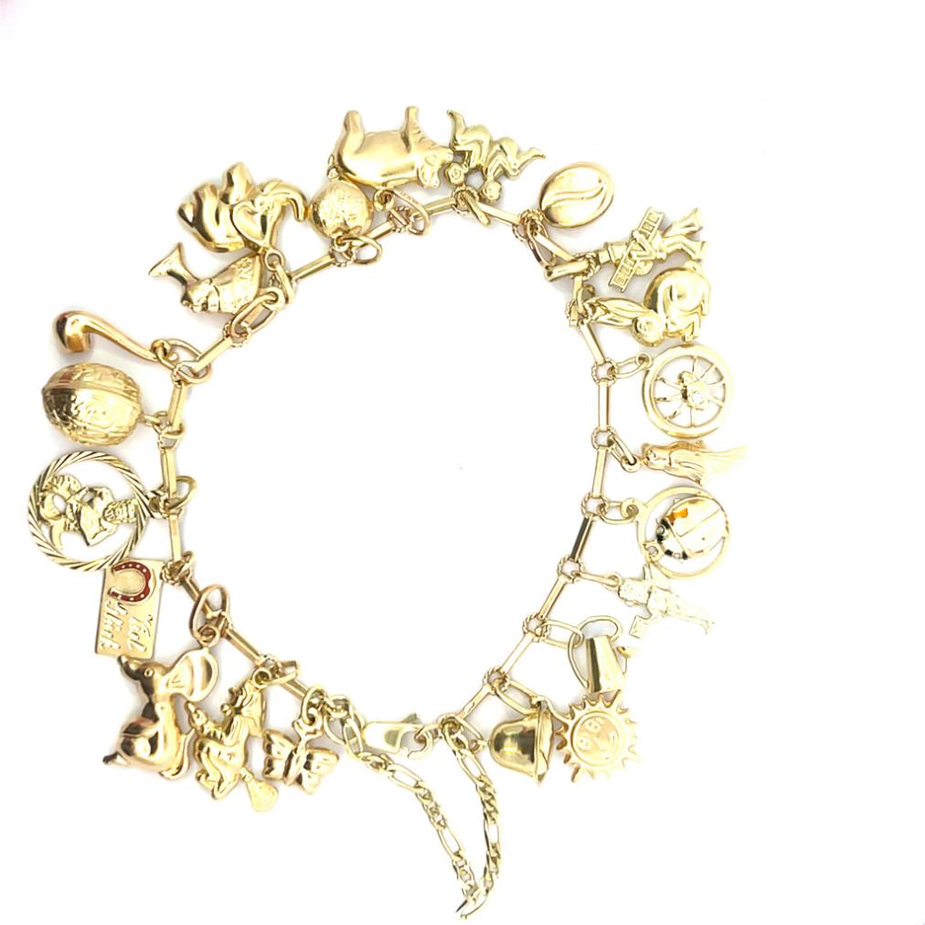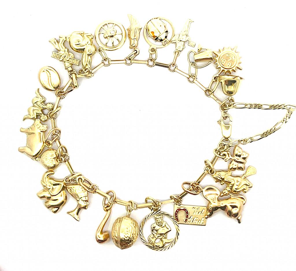 Zlatý náramek s přívěsy, žebrák, 20,91 g