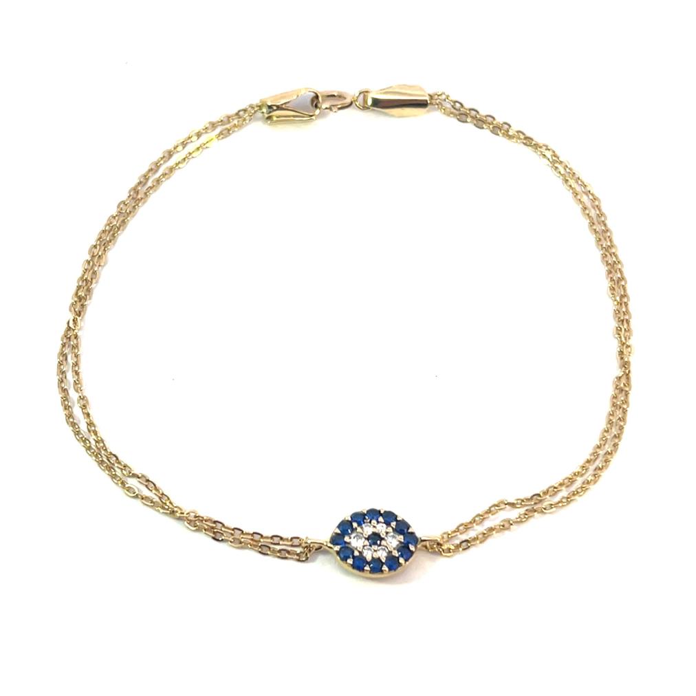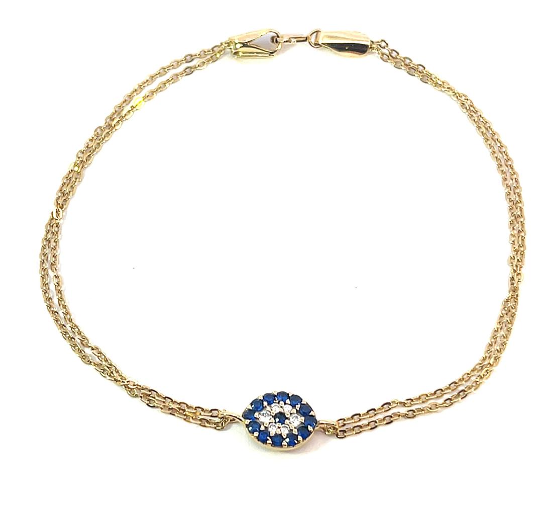 Zlatý náramek se safíry a zirkony, 18 k, 2,59 g