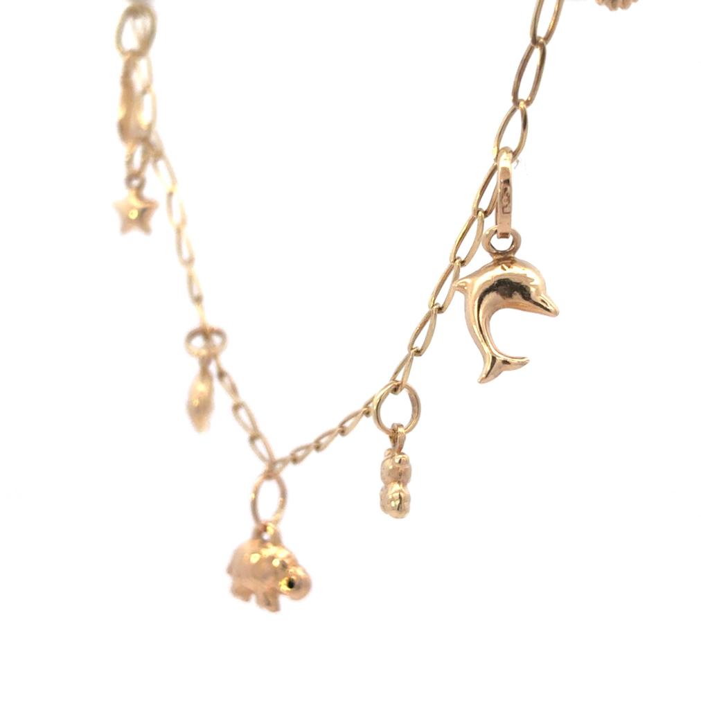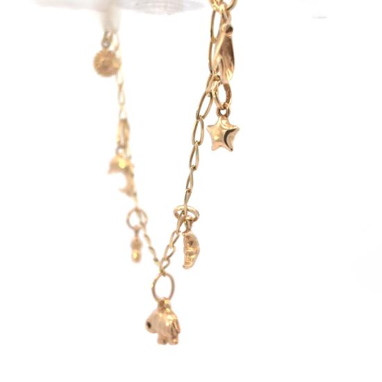 Zlatý náramek o ryzosti 585/1000, punc labuť. Váha 4,09 g, délka 19,3 cm, šírka náramku 2 mm.