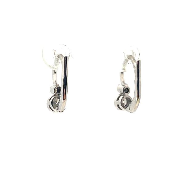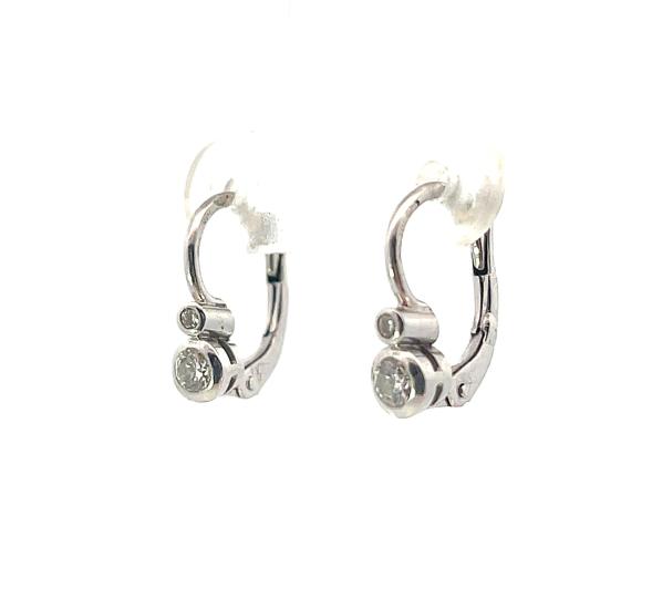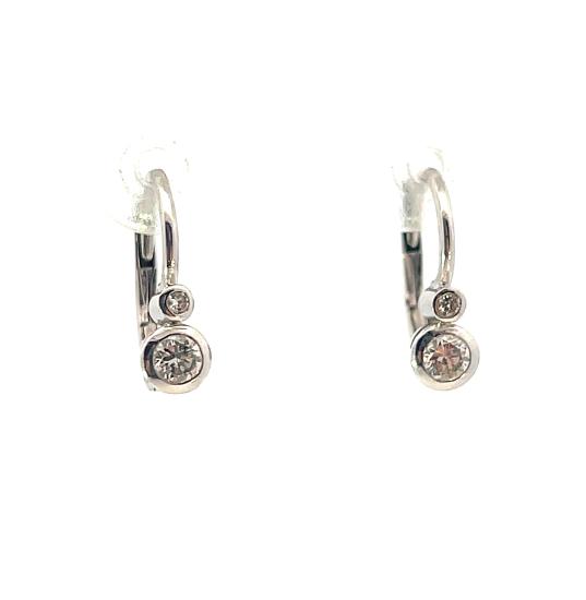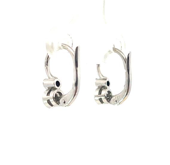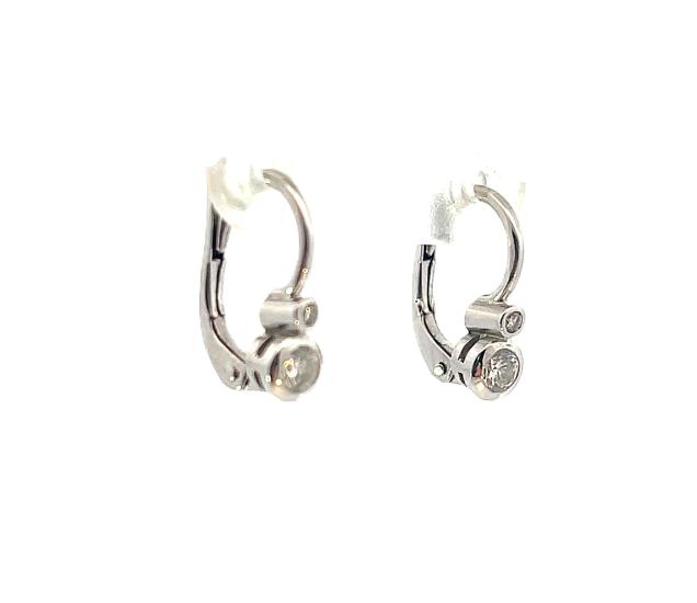 Náušnice z bílého zlata o ryzosti 585/1000, punc labuť. Váha 1,57 g, výška 14 mm, v nejširším bodě 4 mm. Kámen - přírodní diamant briliantového brusu - 4 ks, spodní kameny: 2 ks, cca 0,08 ct každý, vrchní kameny: 2 ks, cca 0,01 ct každý - dohromady cca 0,18 ct.