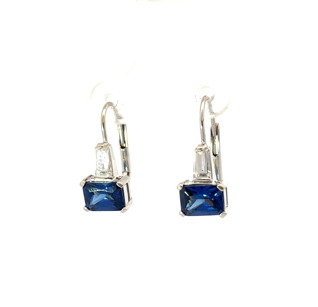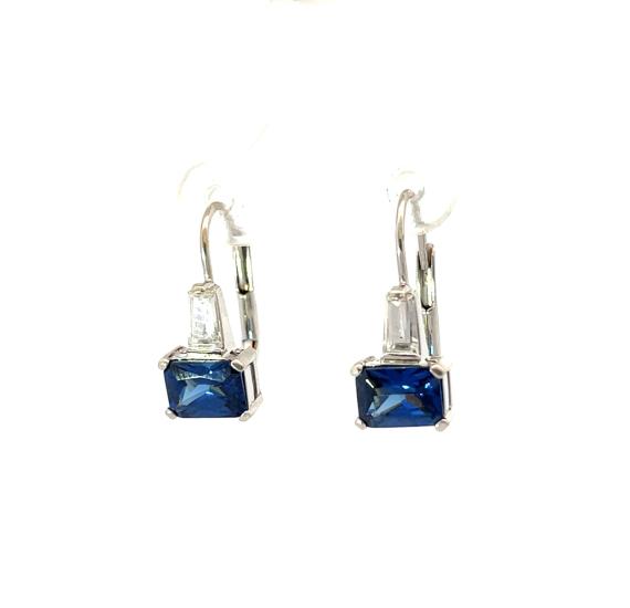 Náušnice z bílého zlata se safíry a zirkony, visací