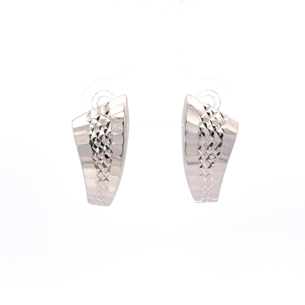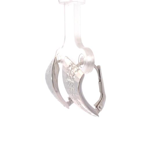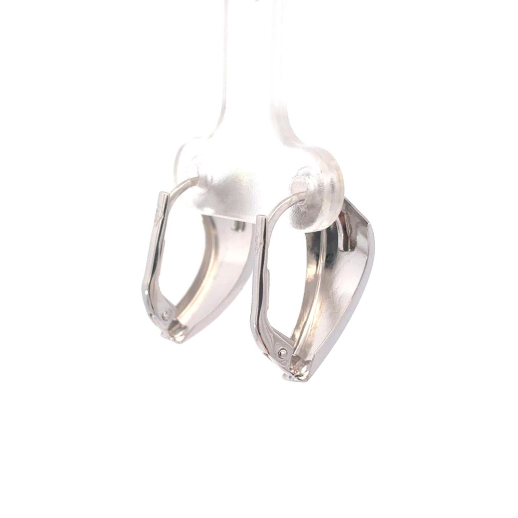 Náušnice z bílého zlata o ryzosti 585/1000, punc labuť. Váha 1,76 g, výška 20 mm, v nejširším bodě 9,5 mm.