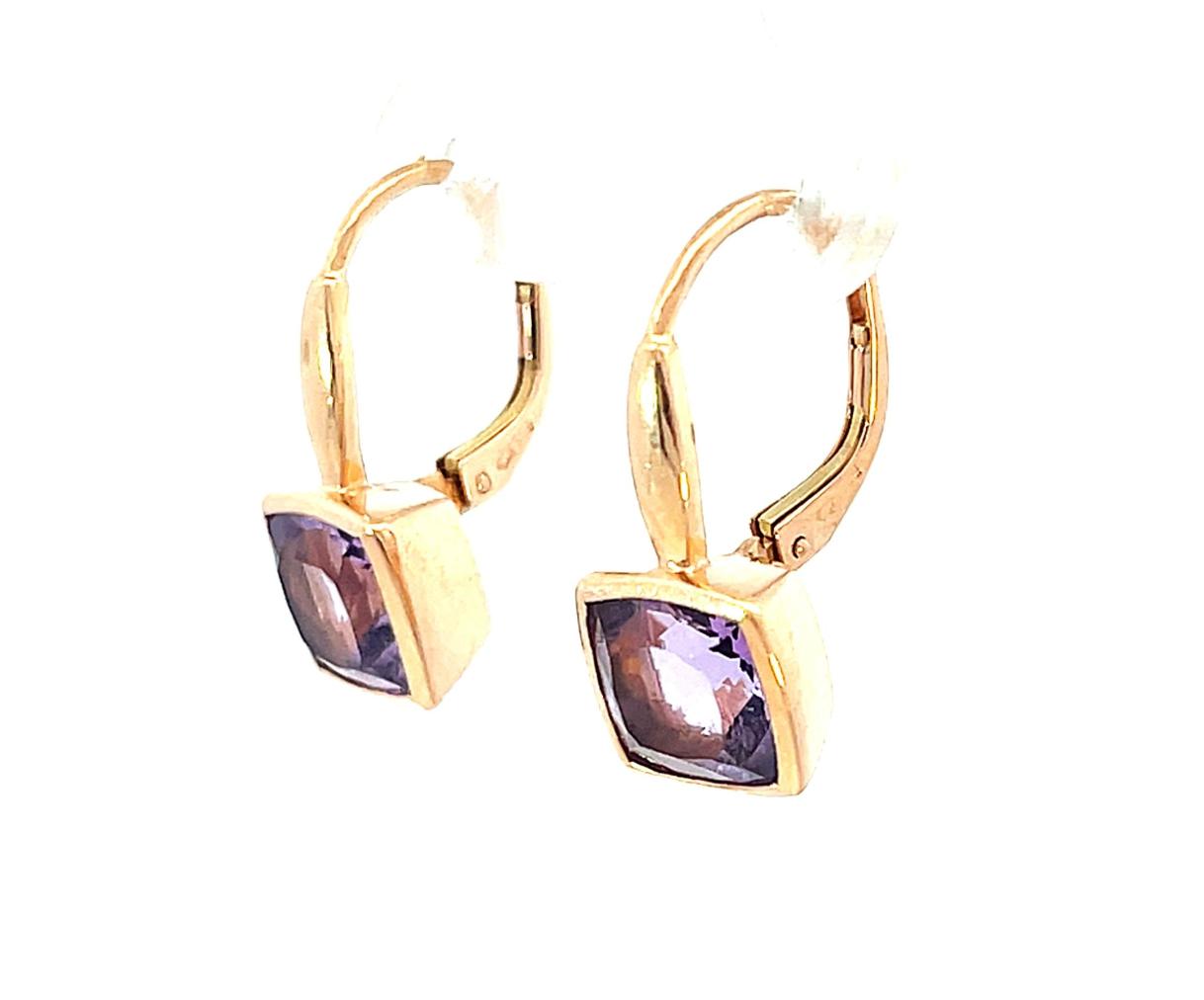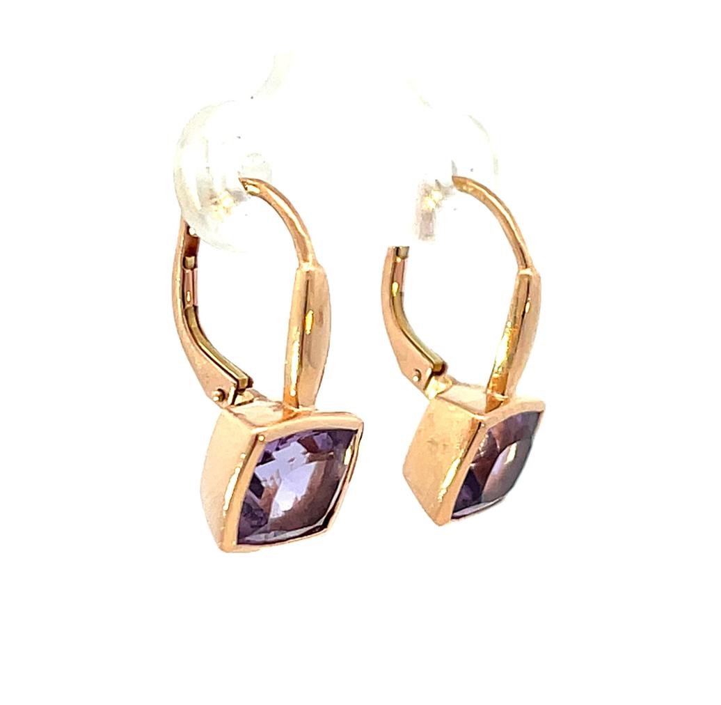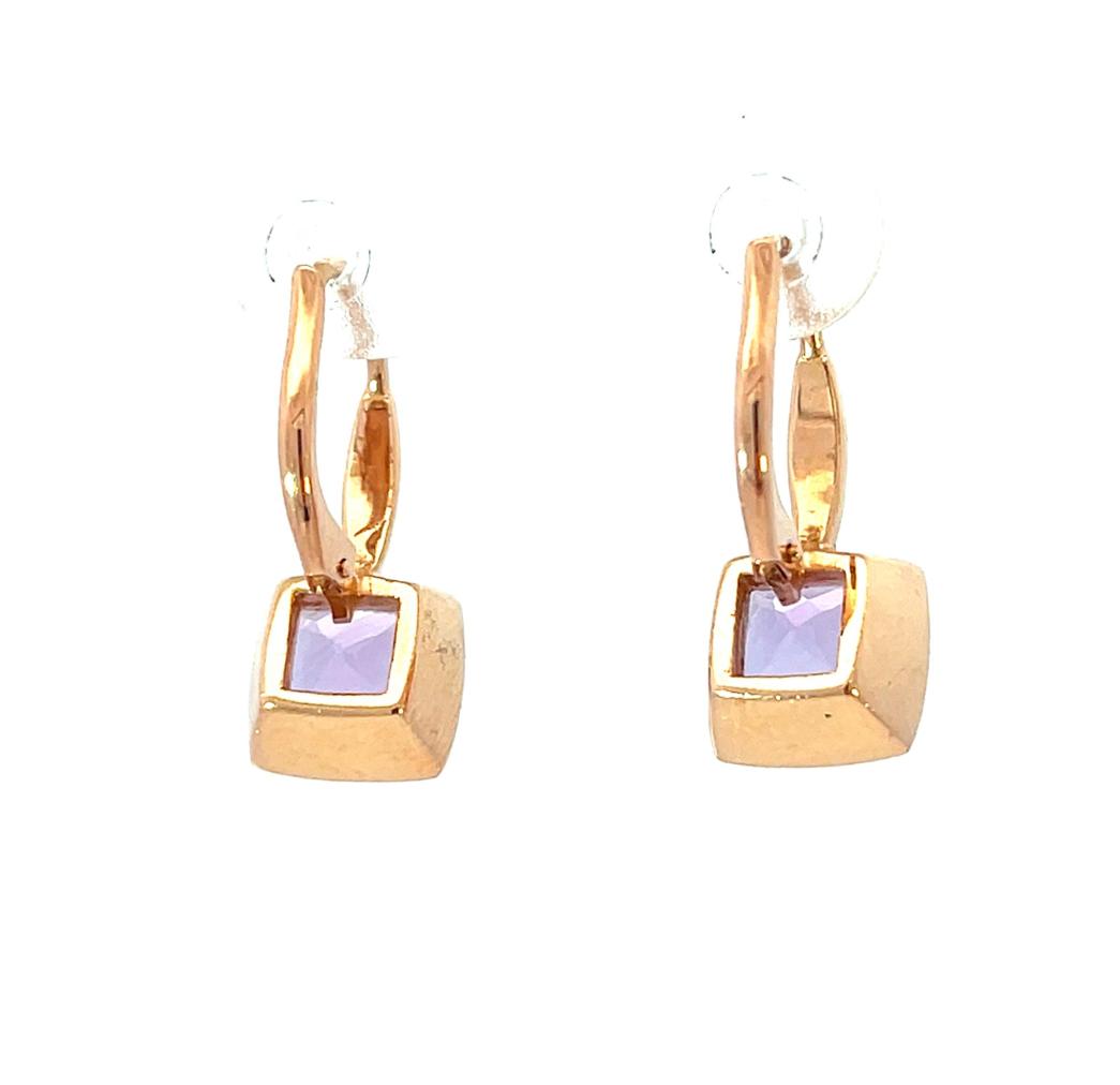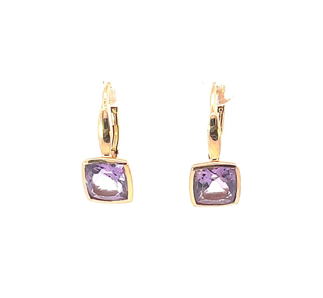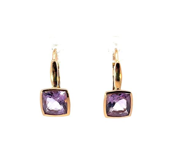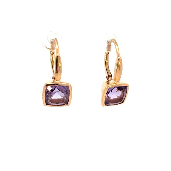 Náušnice z růžového zlata s přírodními ametysty, visací
