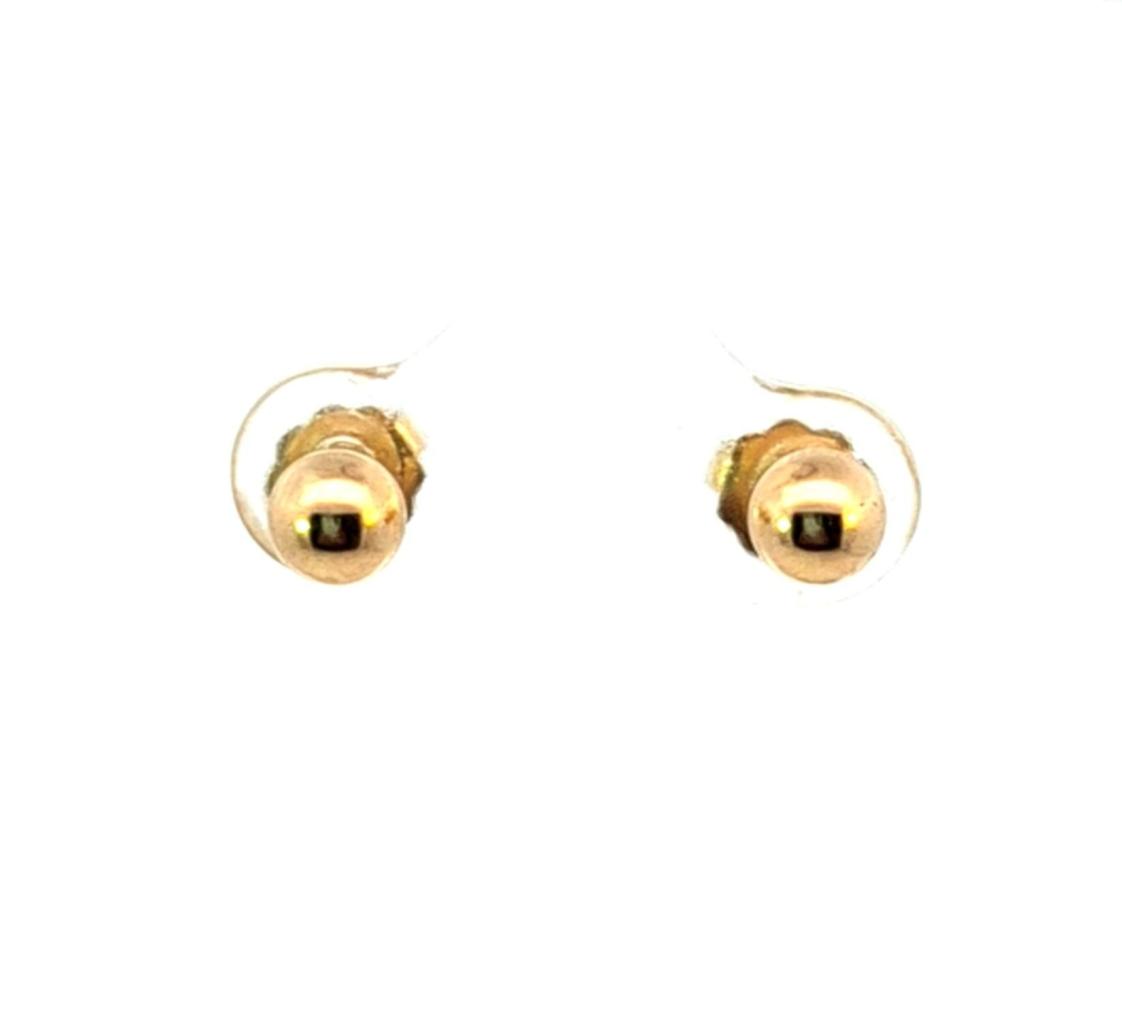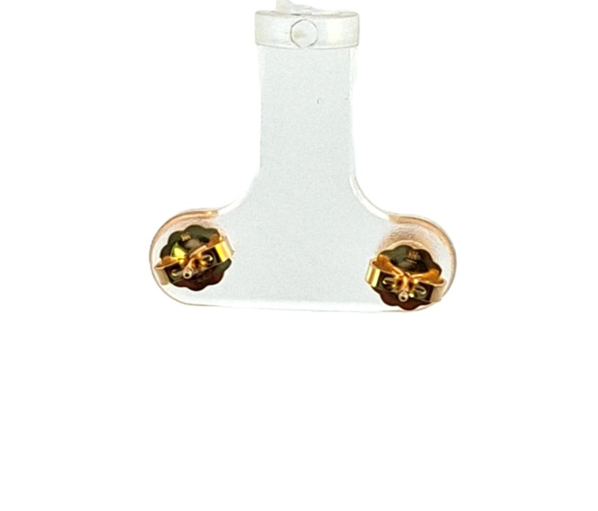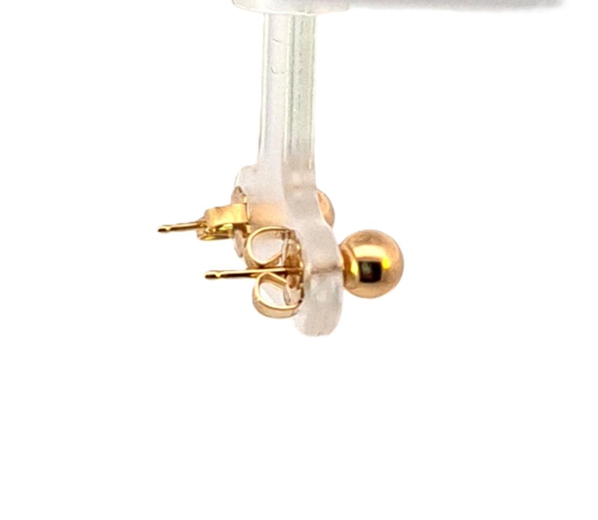 Zlaté náušnice o ryzosti 585/1000, punc lyra. Váha 0,68 g, průměr ozdoby 5 mm.