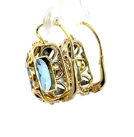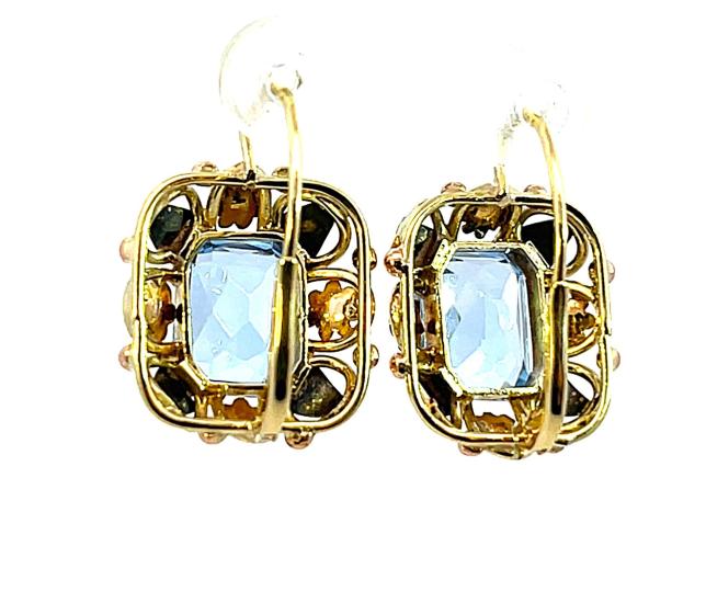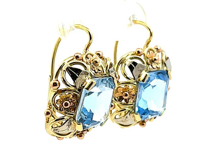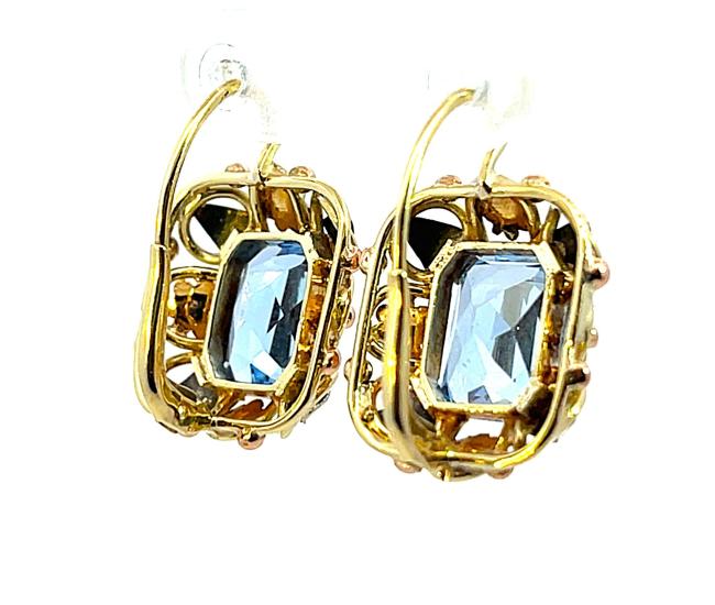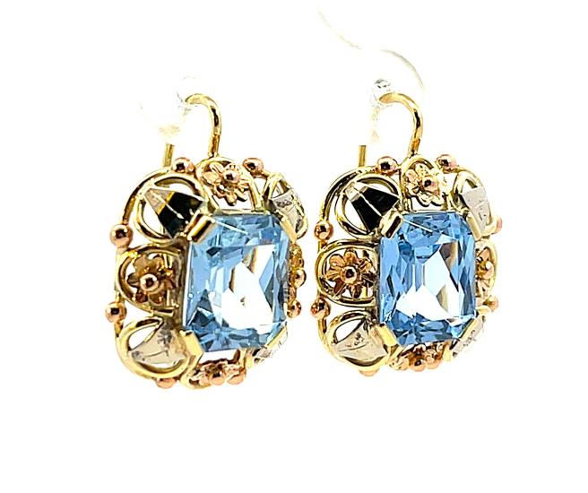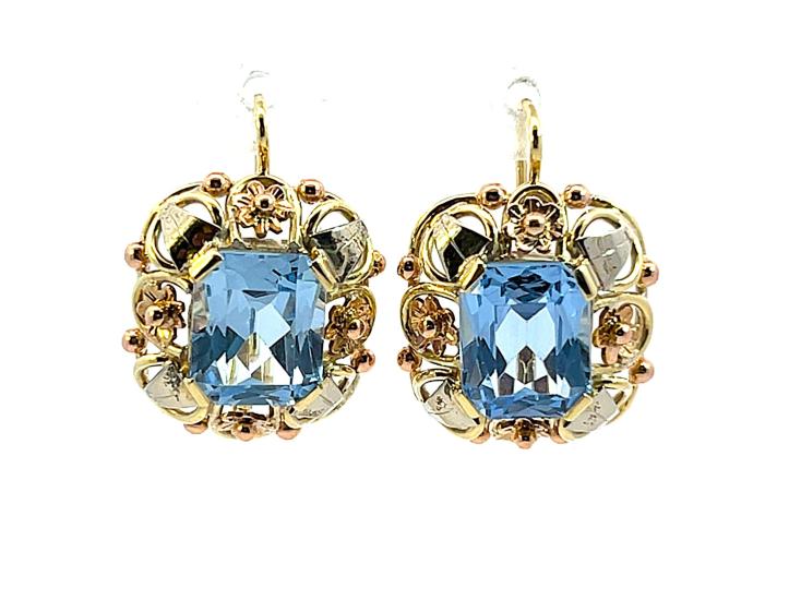 Starožitné zlaté náušnice s akvamaríny, první republika, visací