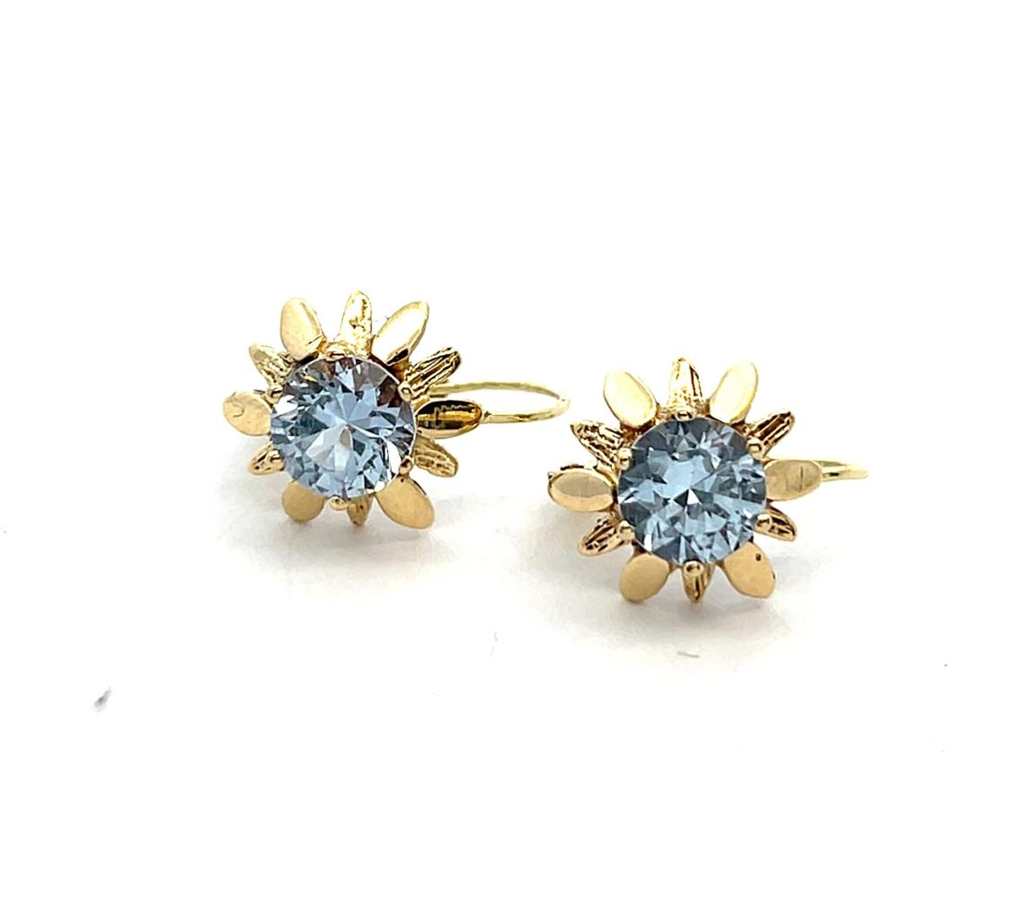 Starožitné zlaté náušnice s akvamaríny, visací