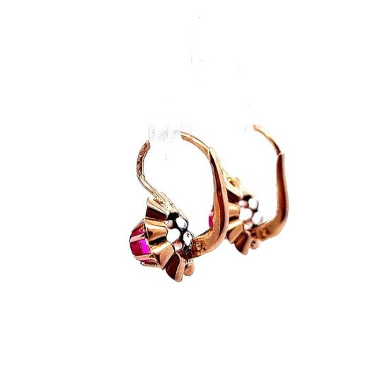 Starožitné zlaté náušnice s červenými kamínky - rubín, visací