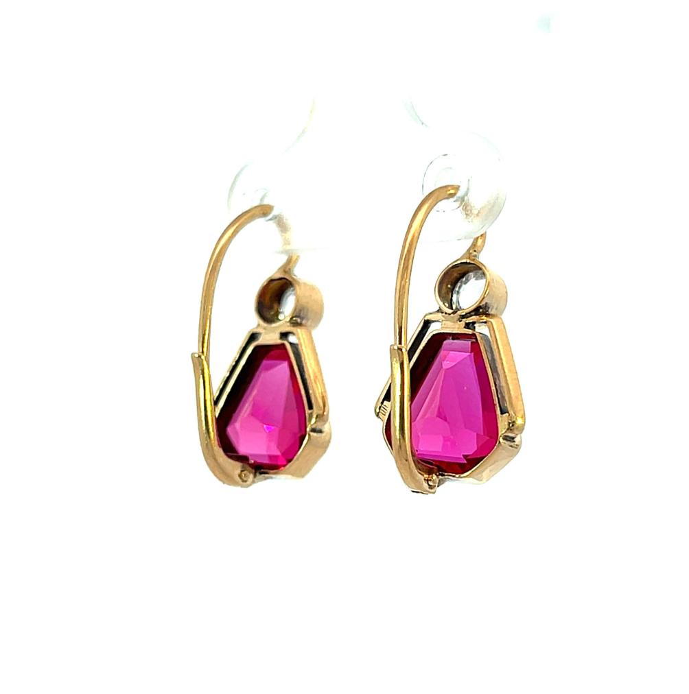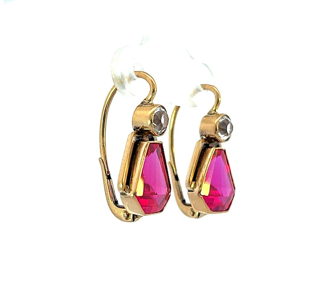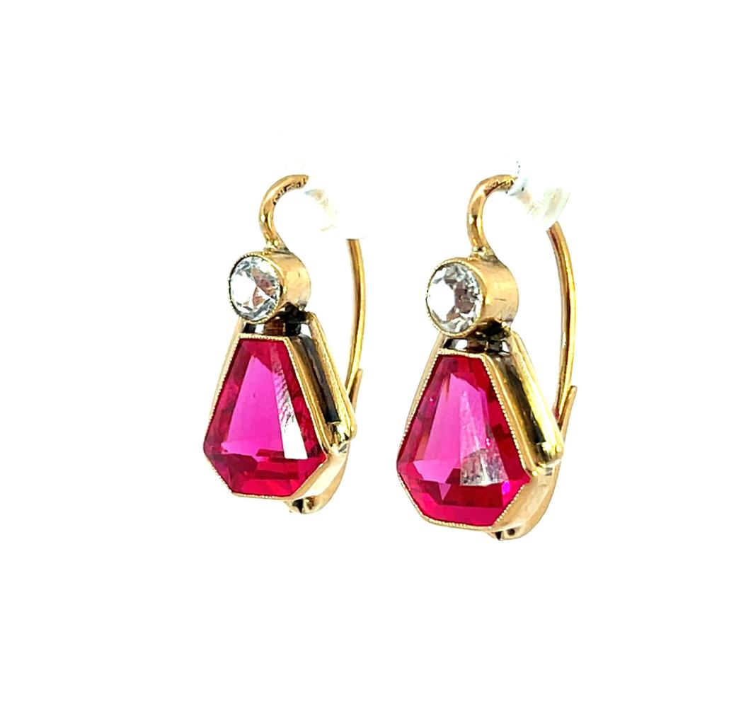 Starožitné zlaté náušnice s rubíny a leukosafíry, Art-deco, visací