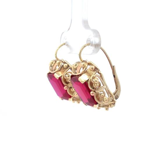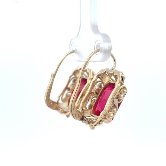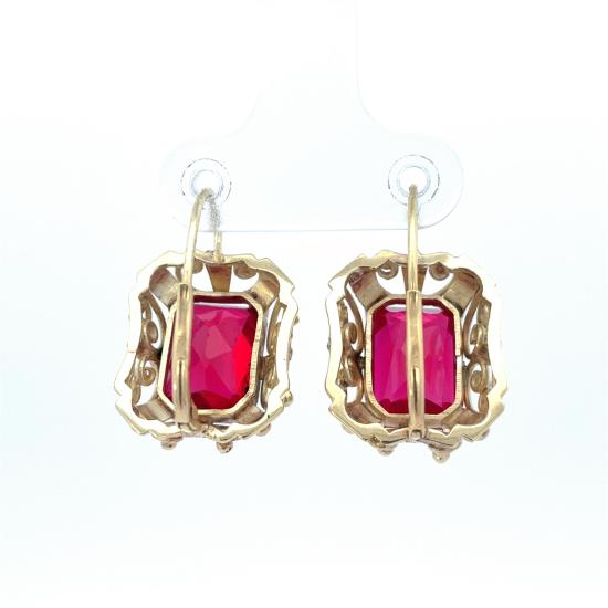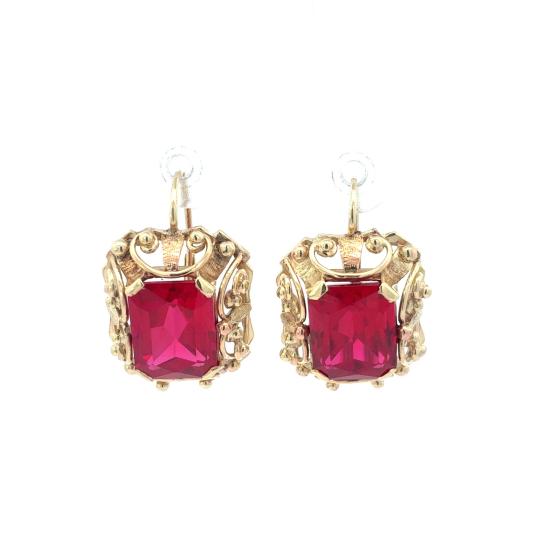 Starožitné zlaté náušnice s rubíny, první republika, visací