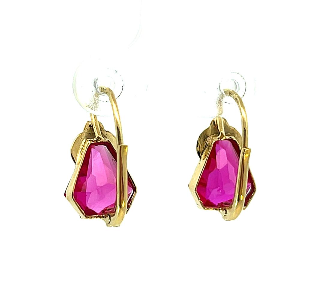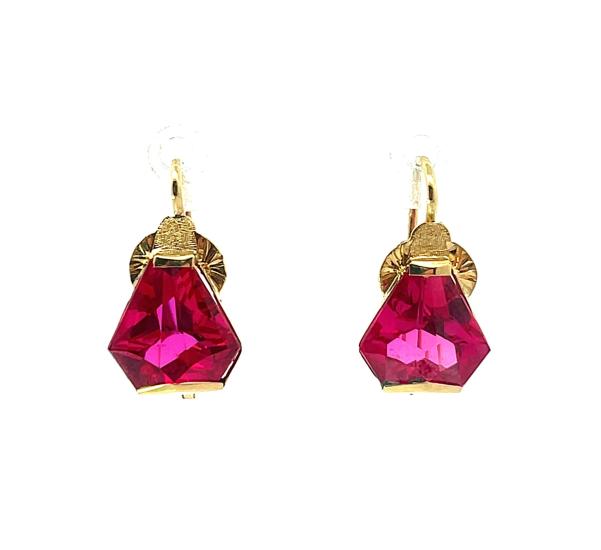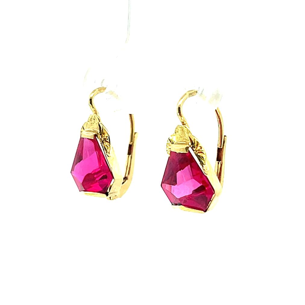 Starožitné zlaté náušnice s rubíny, první republika, visací