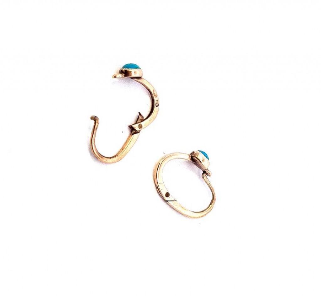 Starožitné zlaté náušnice s tyrkysem, Rakousko-Uhersko, visací