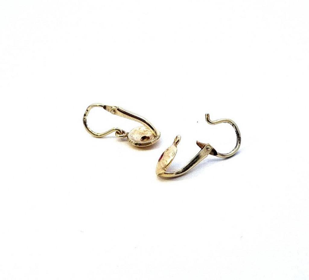 Zlaté náušnice o ryzosti 585/1000, punc liška. Váha 1,07 g, výška 14,5 mm, v nejširším bodě 4 mm.