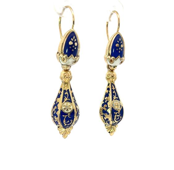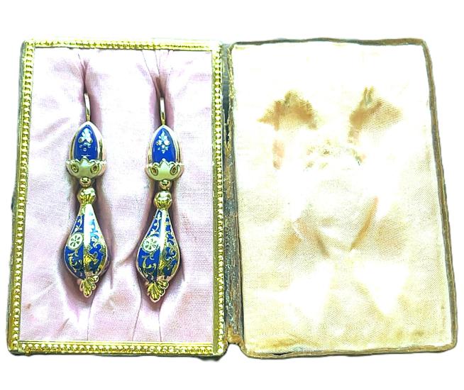 Starožitné zlaté náušnice se smaltem, Rakousko-Uhersko
