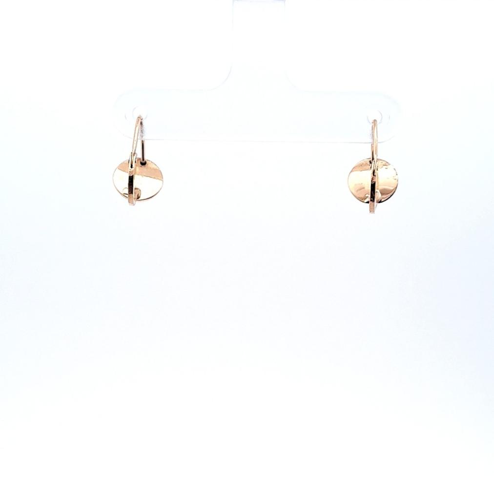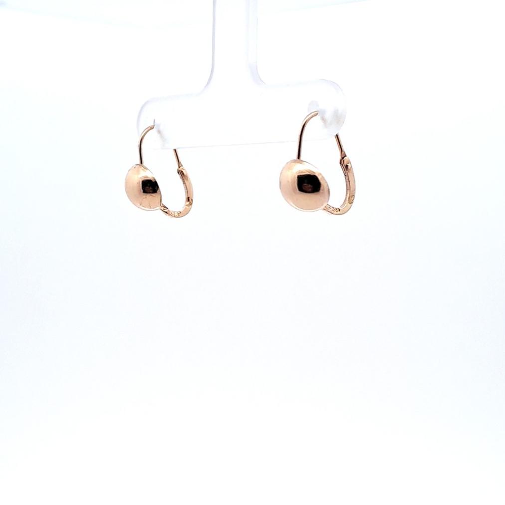 Starožitné zlaté náušnice, visací. Ryzost 583/1000, punc kukuřičný klas. Váha 1,05 g, výška 14 mm, průměr kuličky 7,5 mm.