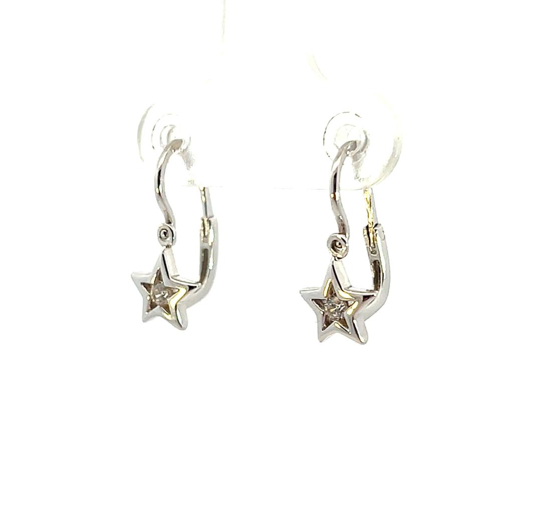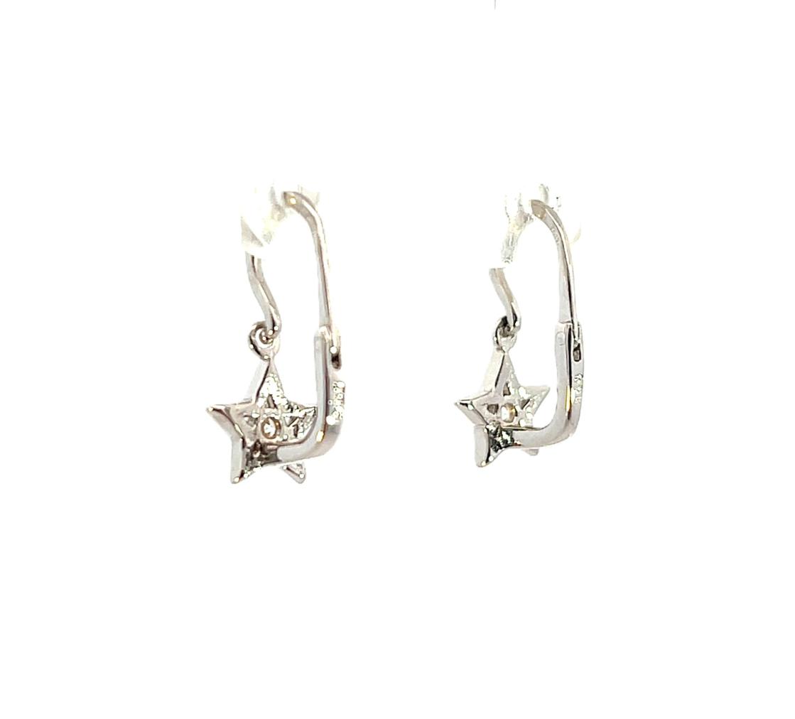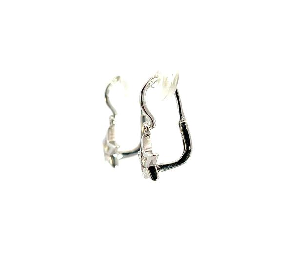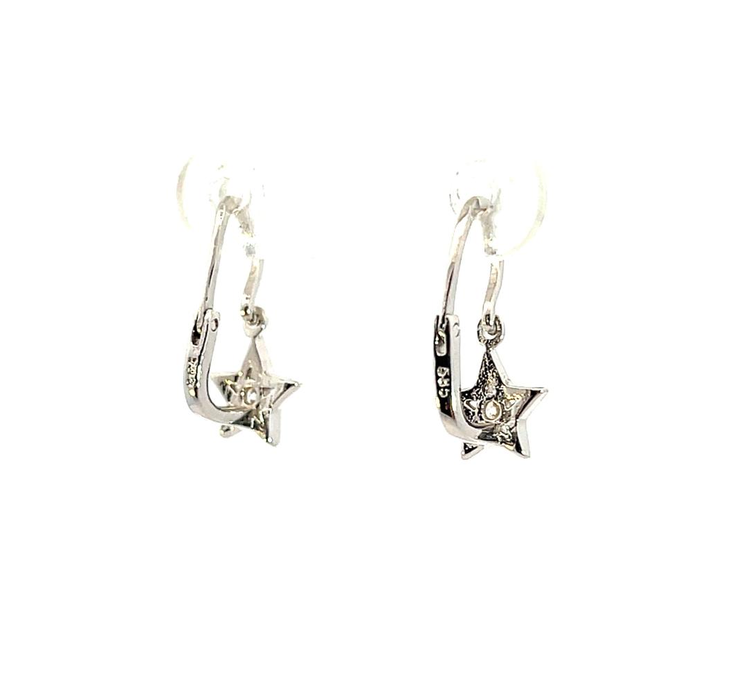 Náušnice z bílého zlata o ryzosti 585/1000, punc labuť. Váha 1,34 g, výška 16 mm, v nejširším bodě 7 mm.