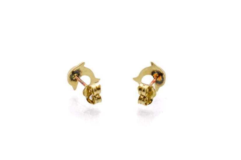 Zlaté náušnice o ryzosti 585/1000, punc labuť. Váha 0,52 g, výška 7 mm, v nejširším bodě 7 mm.