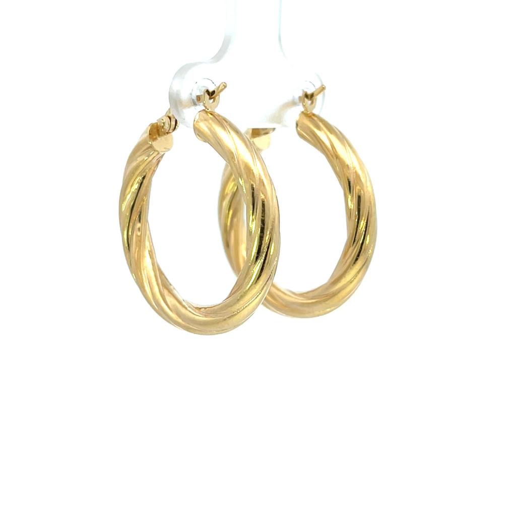 Zlaté náušnice o ryzosti 585/1000, punc labuť. Váha 3,56 g, výška 29 mm, v nejširším bodě 4 mm.