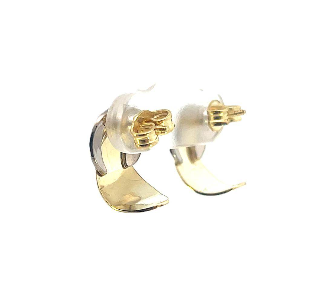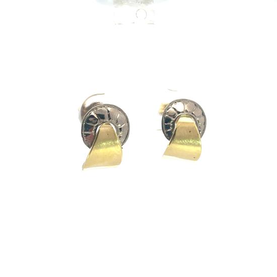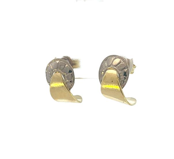 Náušnice z kombinace žlutého a bílého zlata o ryzosti 585/1000, punc labuť. Váha 2,81 g, výška 14 mm, v nejširším bodě 10 mm.