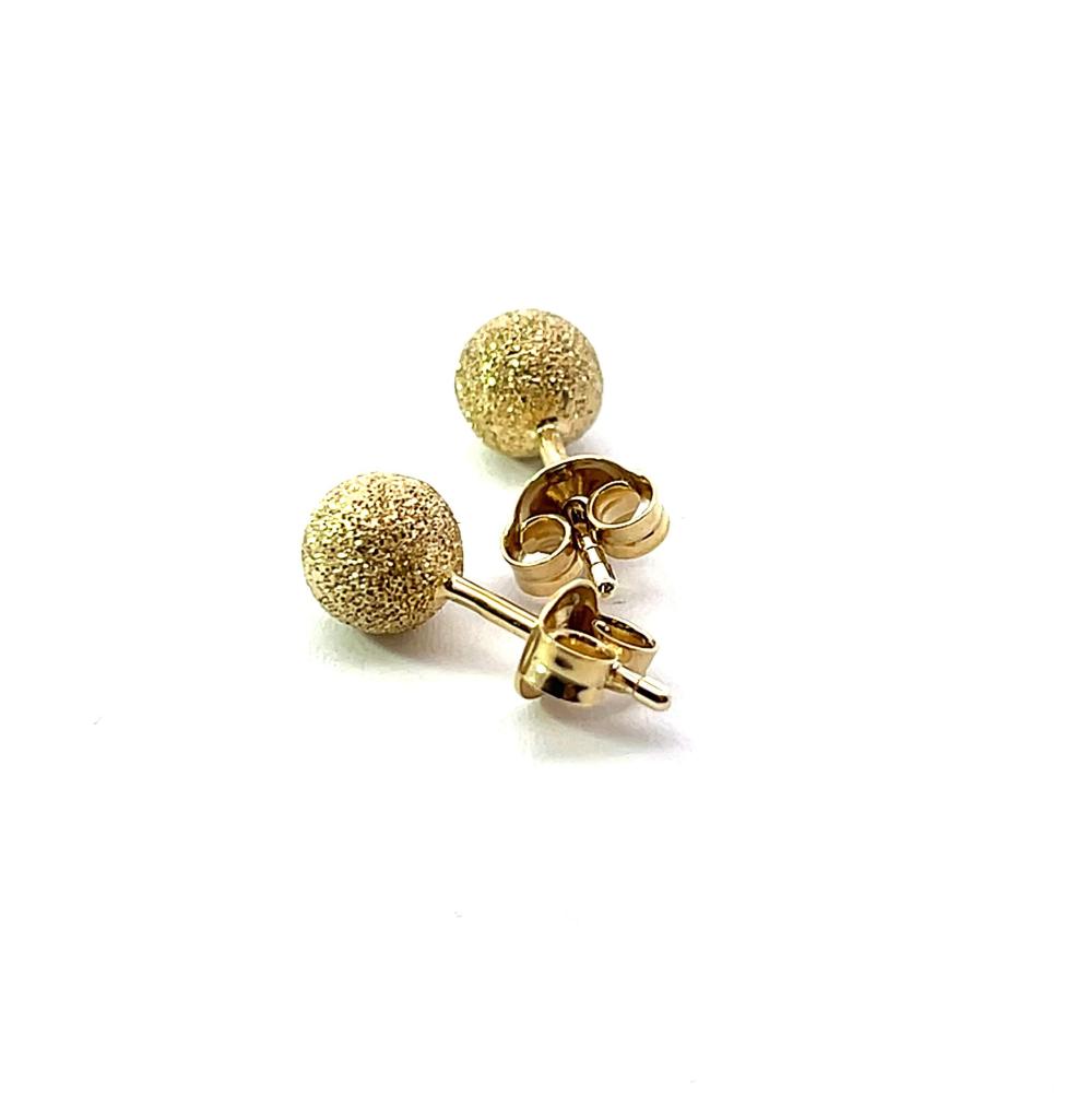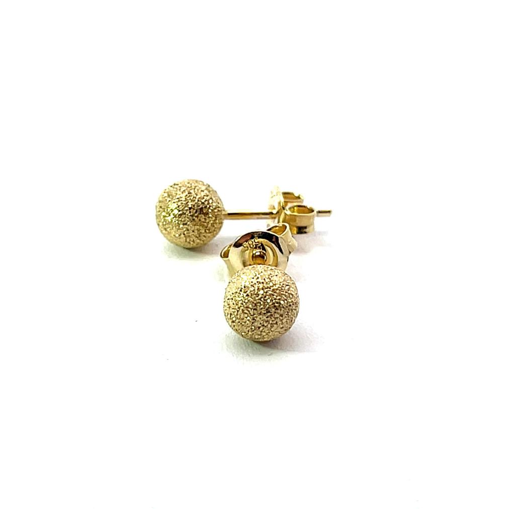 Zlaté náušnice o ryzosti 585/1000, punc labuť. Váha 1,20 g, průměr ozdobné části 6 mm.