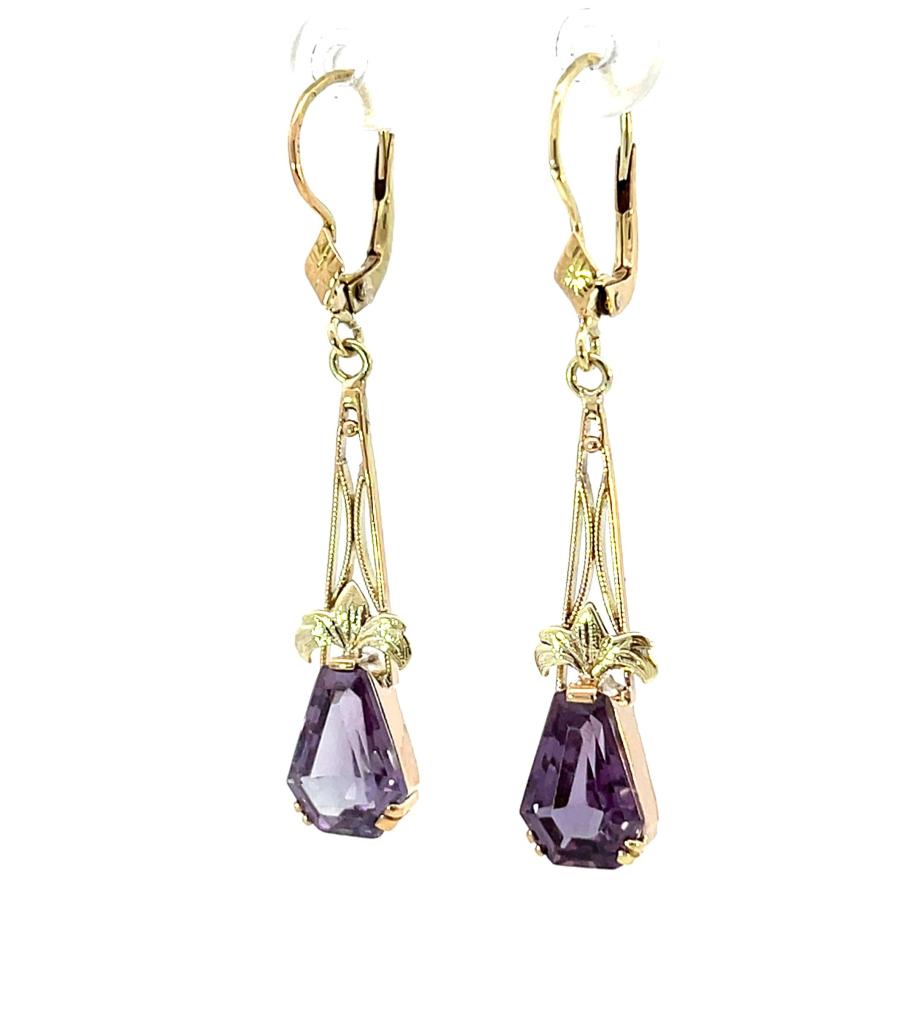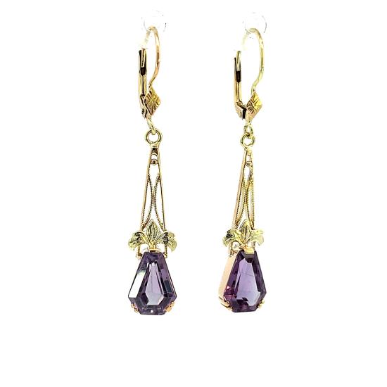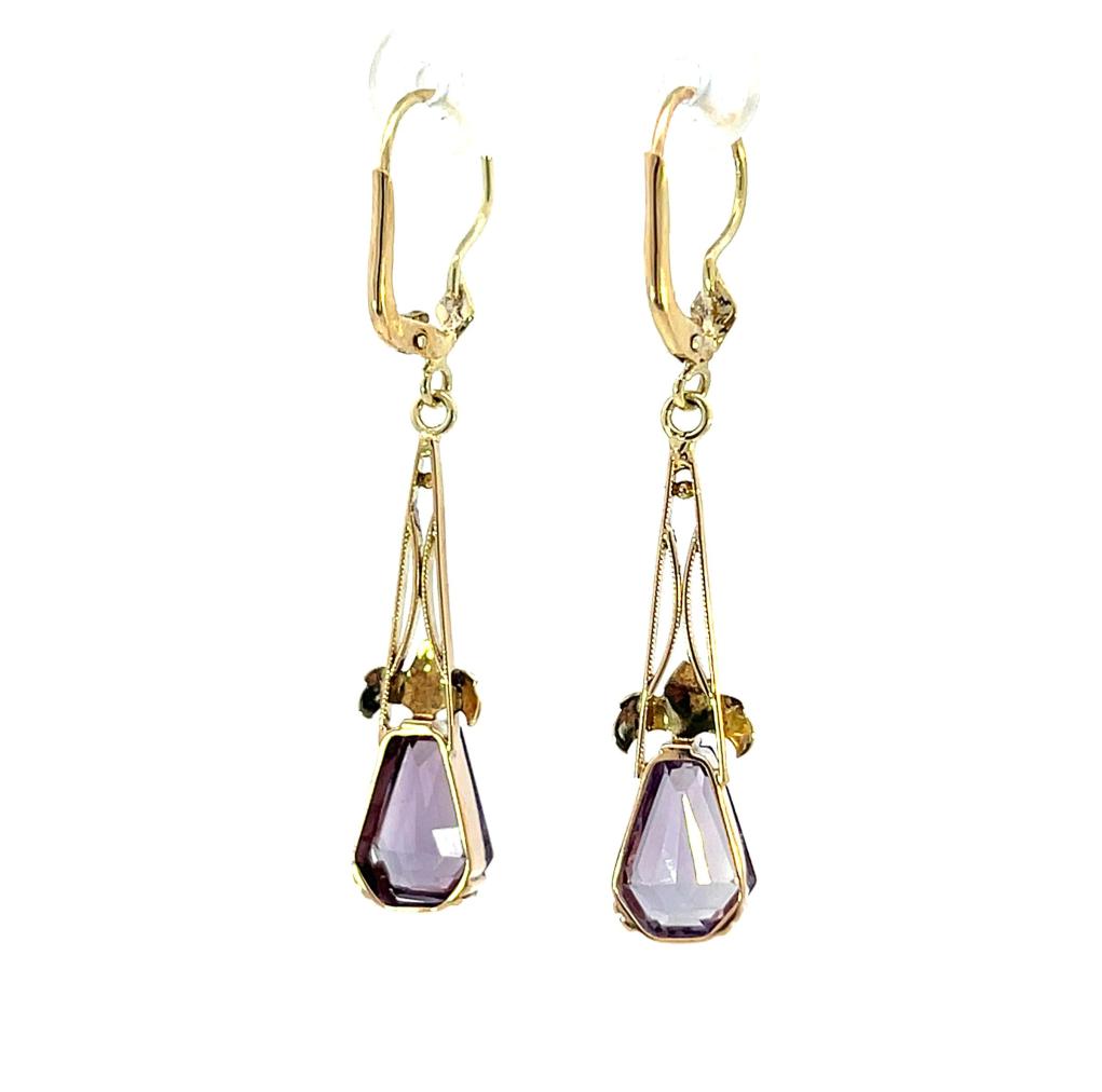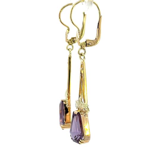 Zlaté náušnice s ametysty, visací