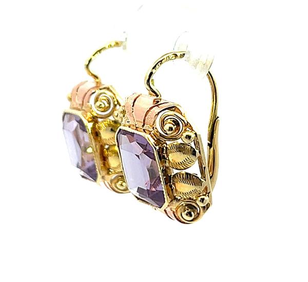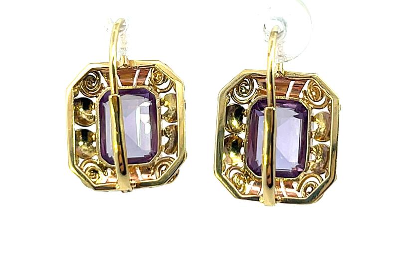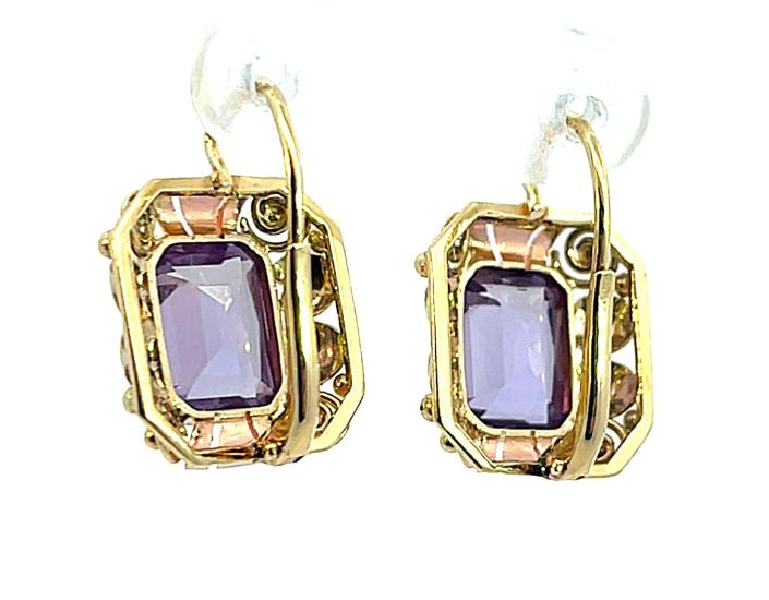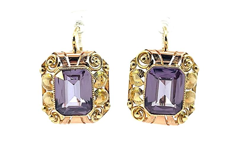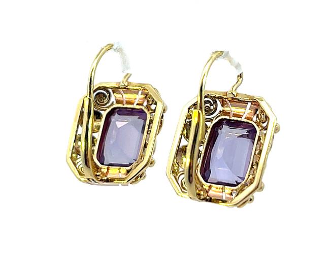 Zlaté náušnice s ametysty, visací