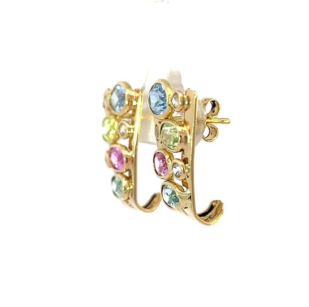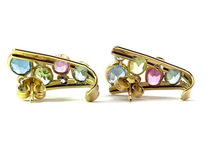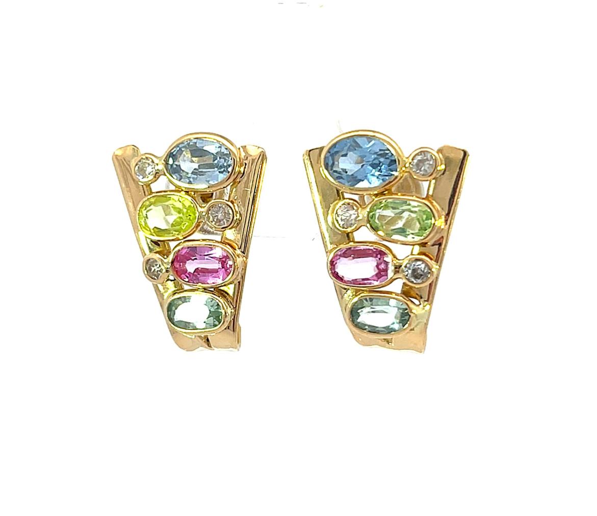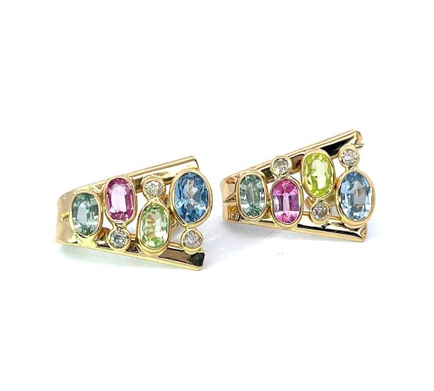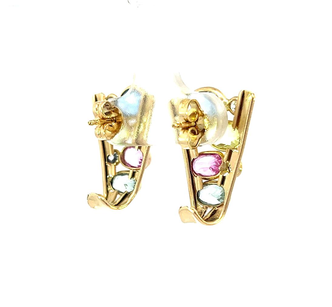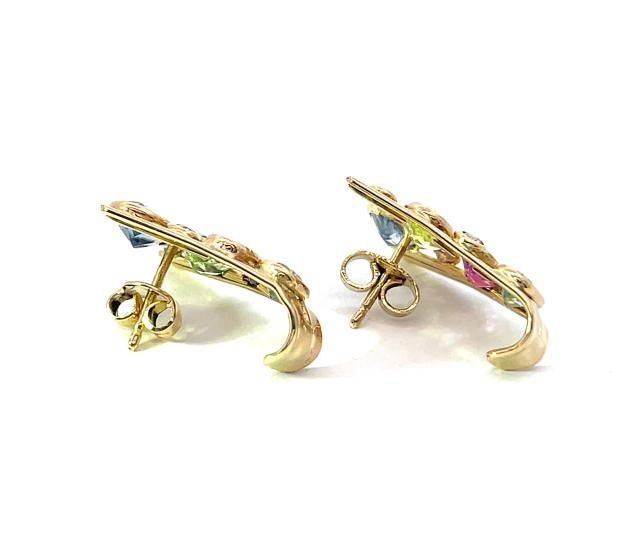 Zlaté náušnice s barevnými kameny, 18 k, puzeta