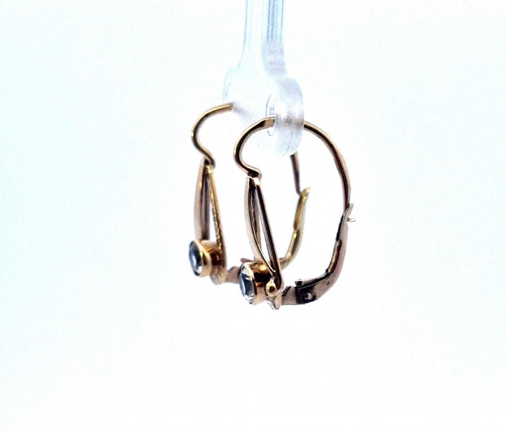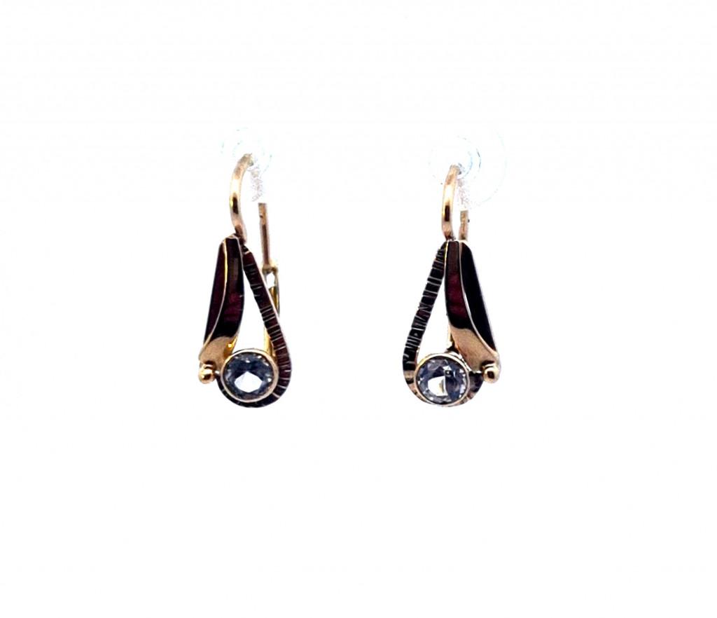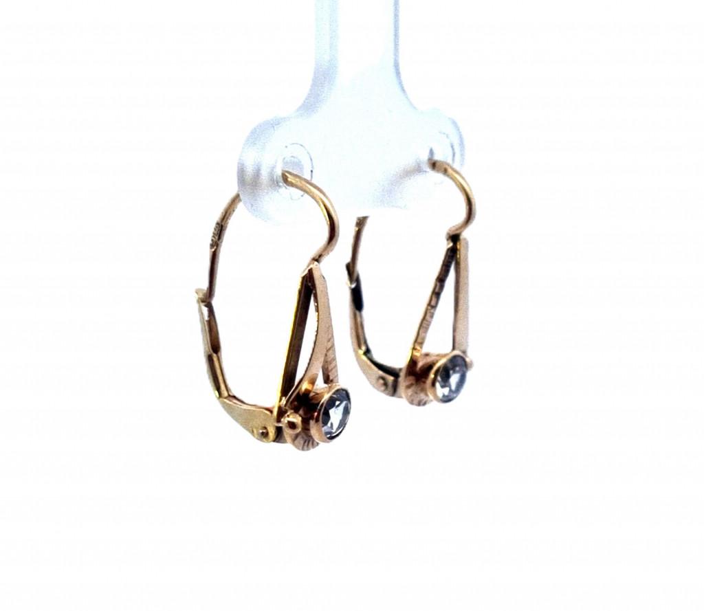 Zlaté náušnice o ryzosti 375/1000, platná puncovní značka. Váha 1,96 g, výška 20 mm, v nejširším bodě 8 mm.