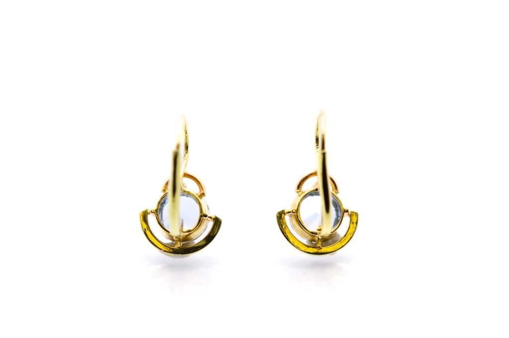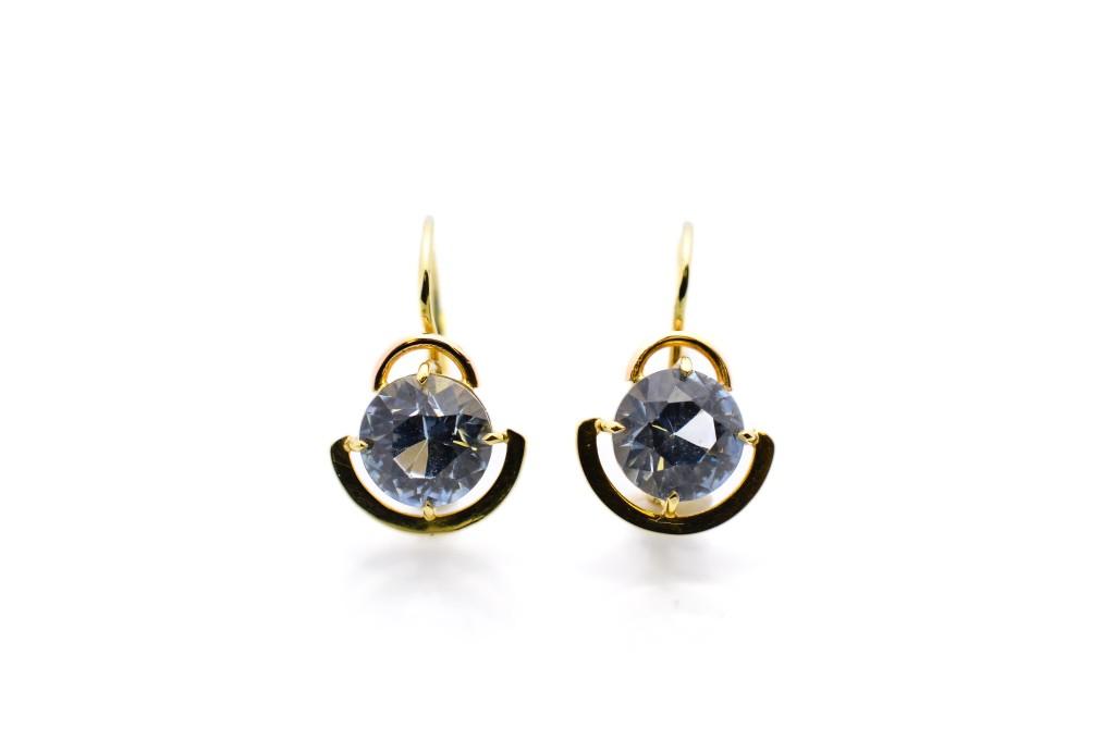 Zlaté náušnice s modrým kamenem - topaz, visací