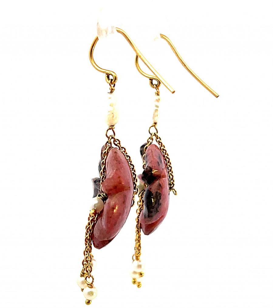 Zlaté náušnice o ryzosti 750/1000, punc kohout. Váha 7,91 g, výška 51 mm, v nejširším bodě 18 mm.