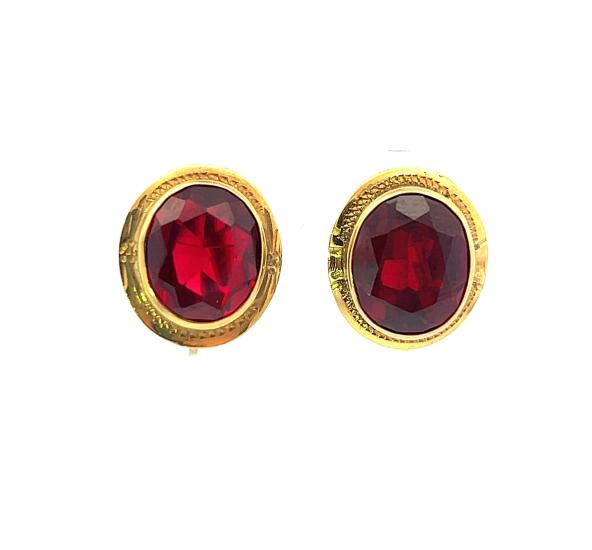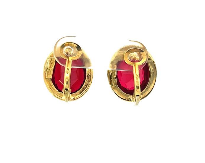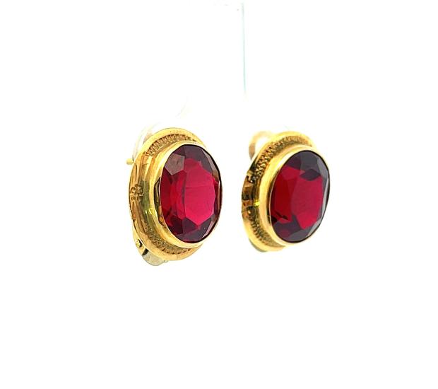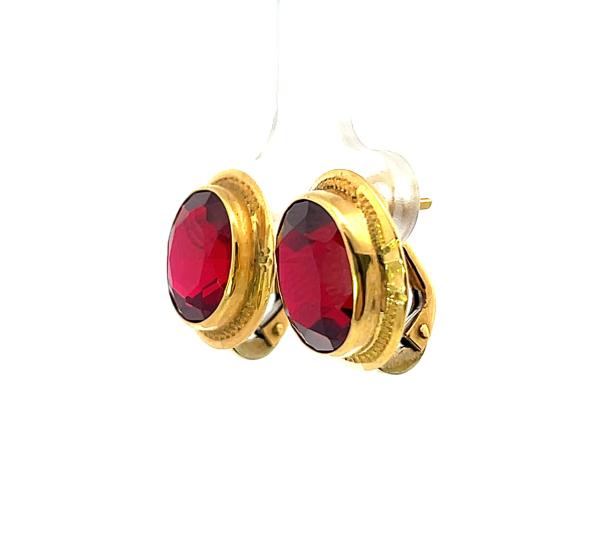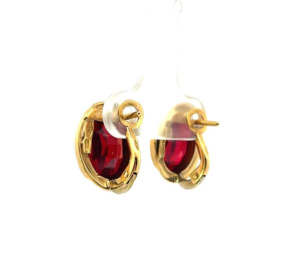 Zlaté náušnice o ryzosti 750/1000, punc kohout. Váha 6,25 g, rozměr ozdoby 15 x 13,5 mm. Kameny jsou syntetické.