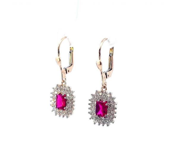 Zlaté náušnice s rubíny a zirkony, visací