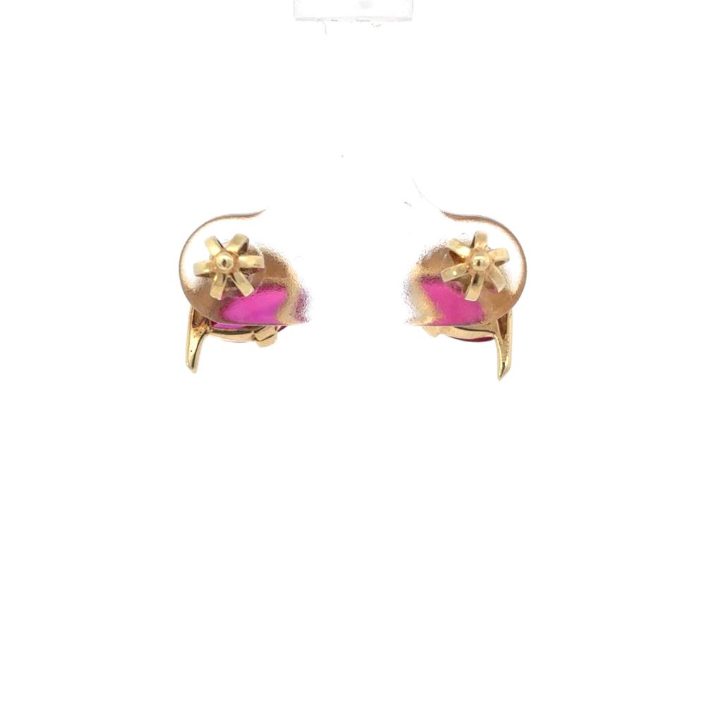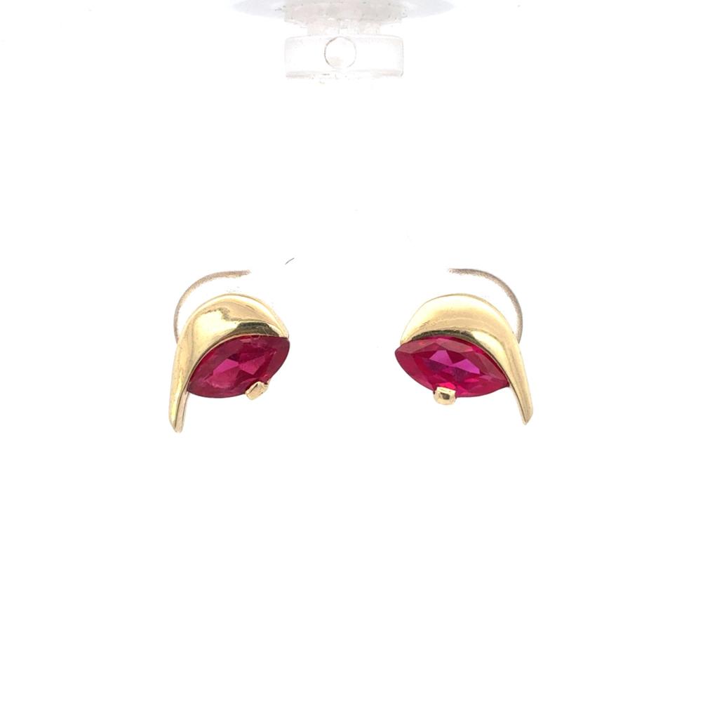 Zlaté náušnice o ryzosti 585/1000, punc labuť. Váha 1,79 g, rozměr ozdobné části 11 x 8 mm. Kameny jsou syntetické.