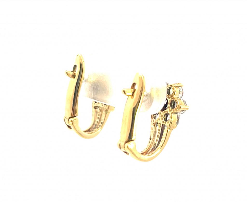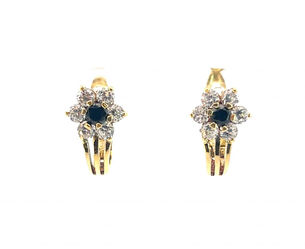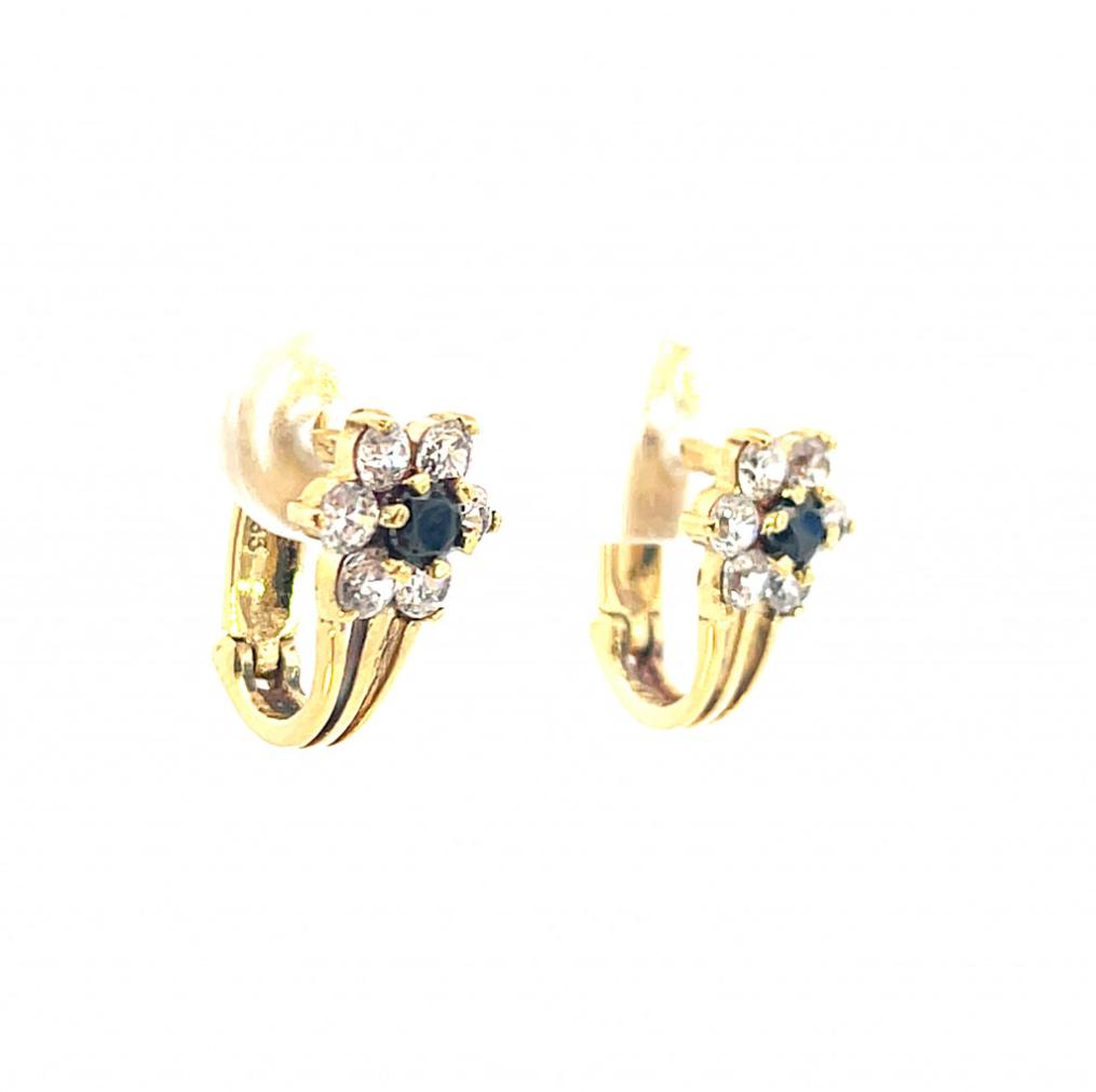 Zlaté náušnice se zirkony a safíry - květiny