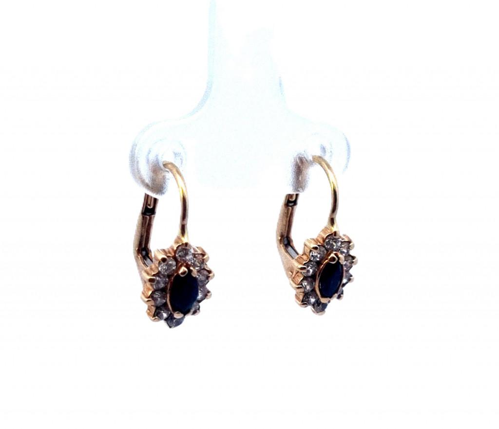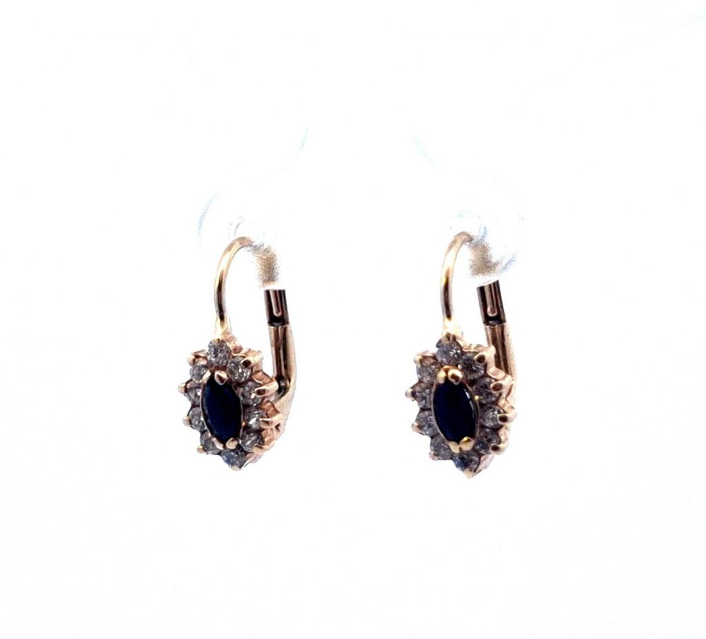Zlaté náušnice se zirkony a safíry, visací