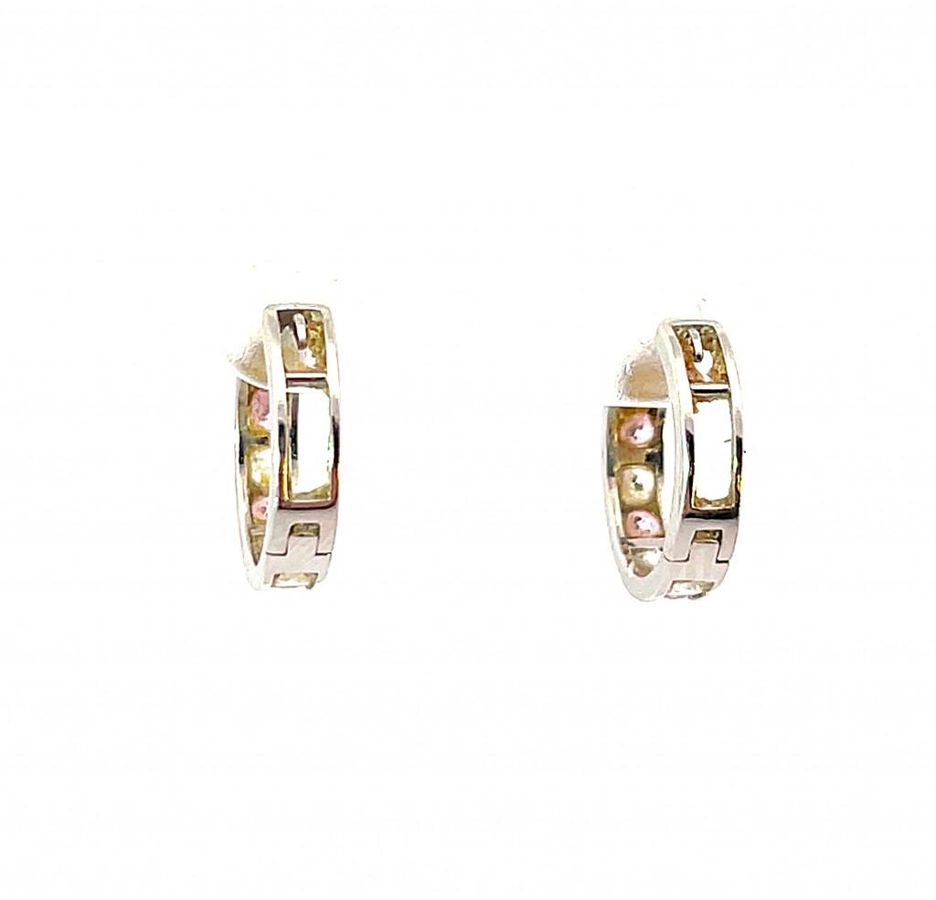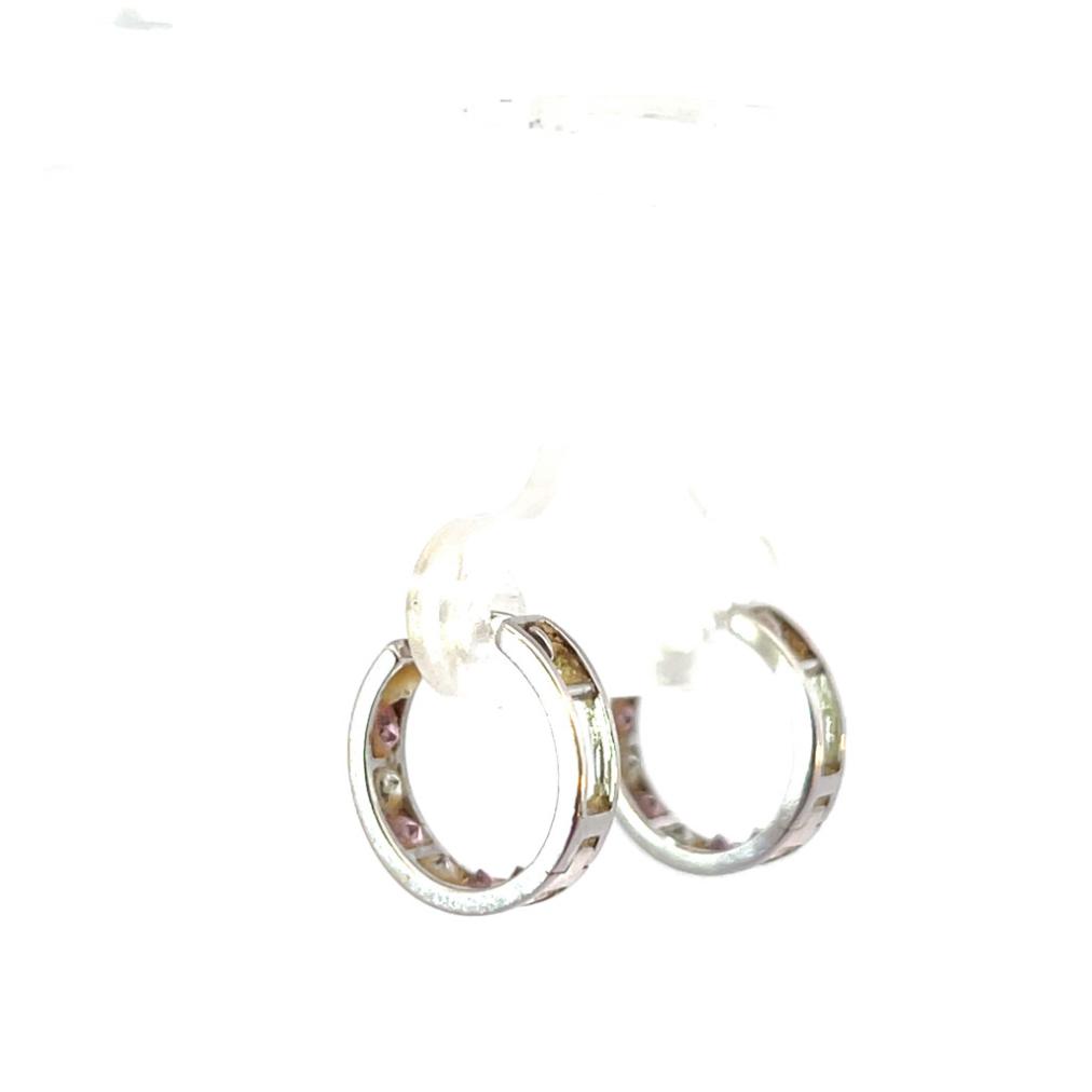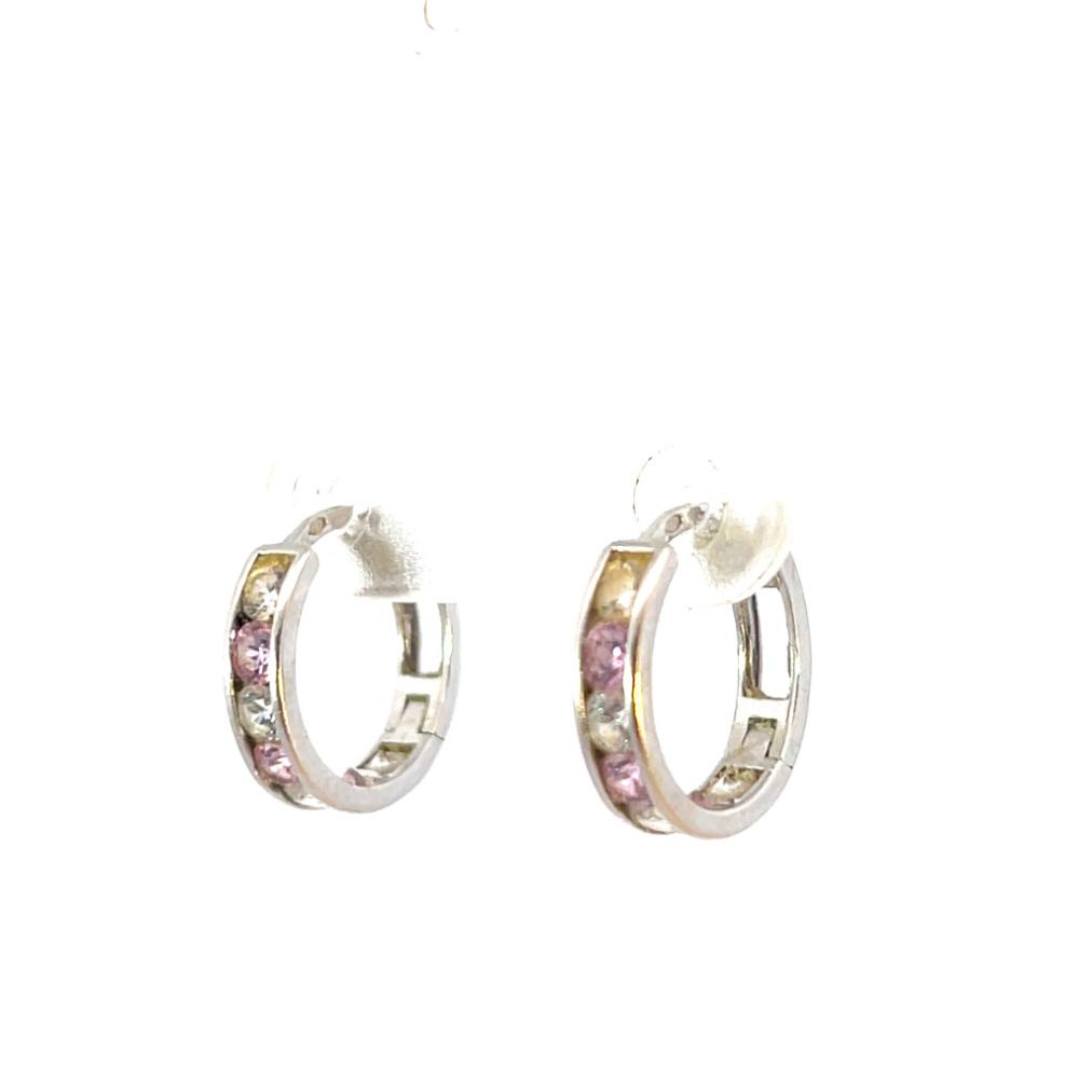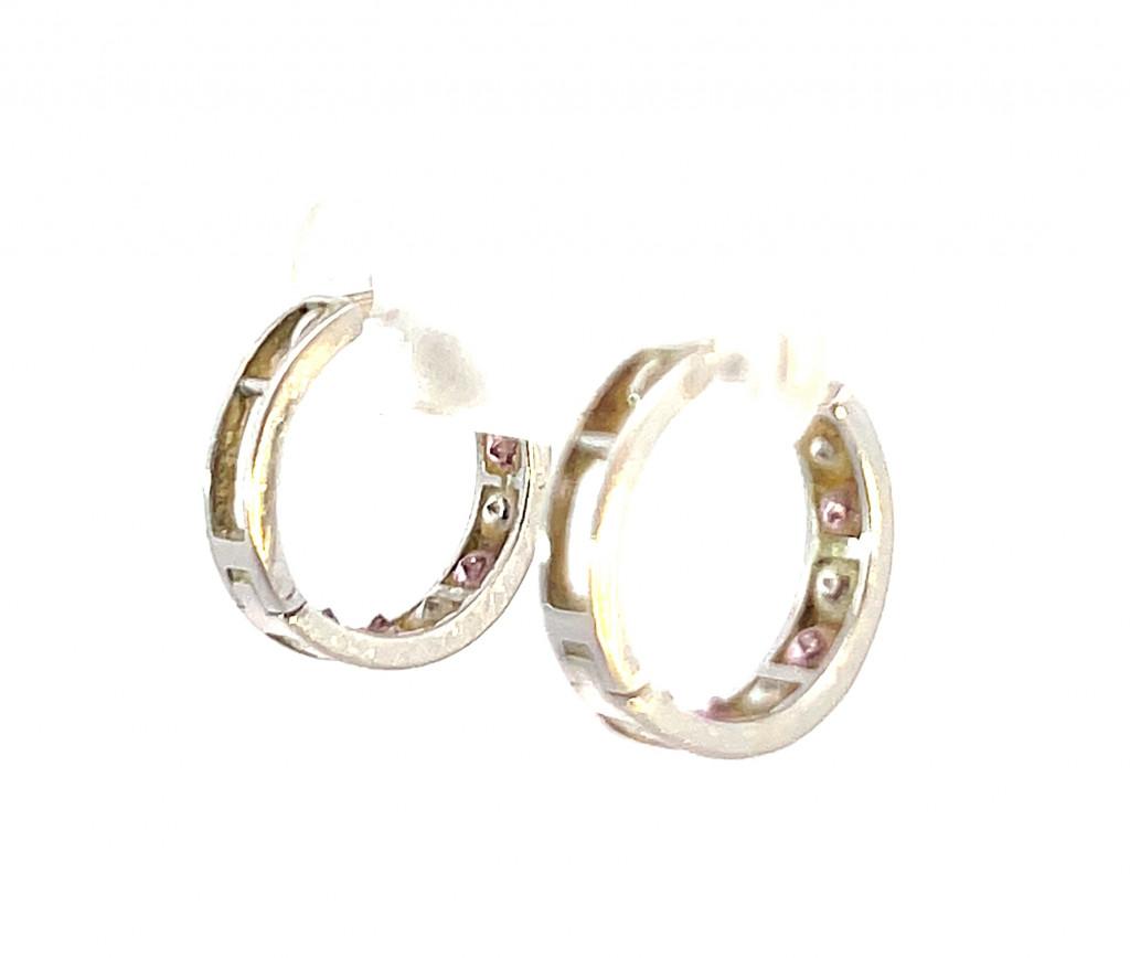 Náušnice z bílého zlata o ryzosti 585/1000, punc labuť. Váha 1,50 g, výška 12,5 mm, v nejširším bodě 3 mm. Kameny jsou syntetické,