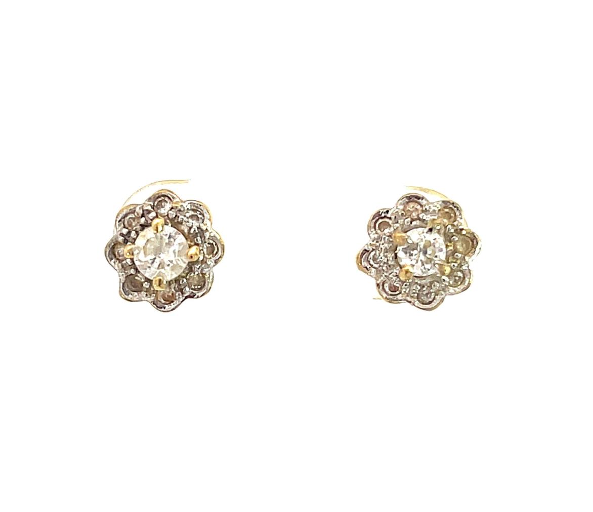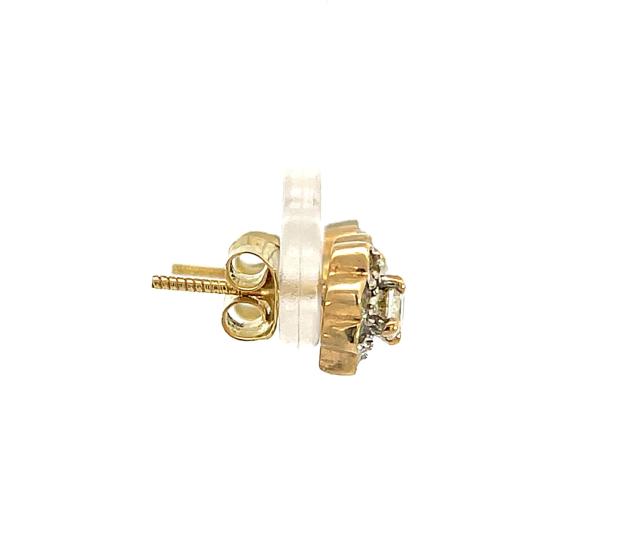 Zlaté náušnice o ryzosti 585/1000, punc labuť. Váha 2,34 g, průměr ozdoby 8 mm.