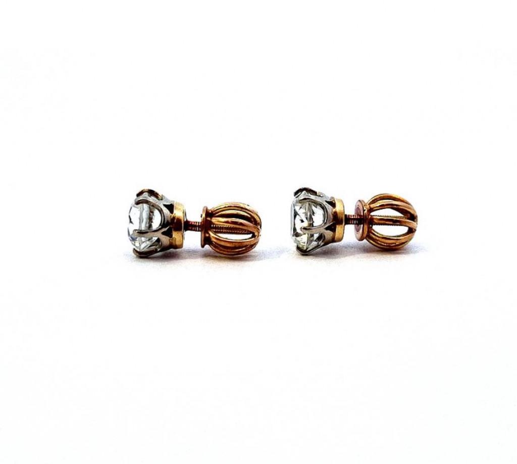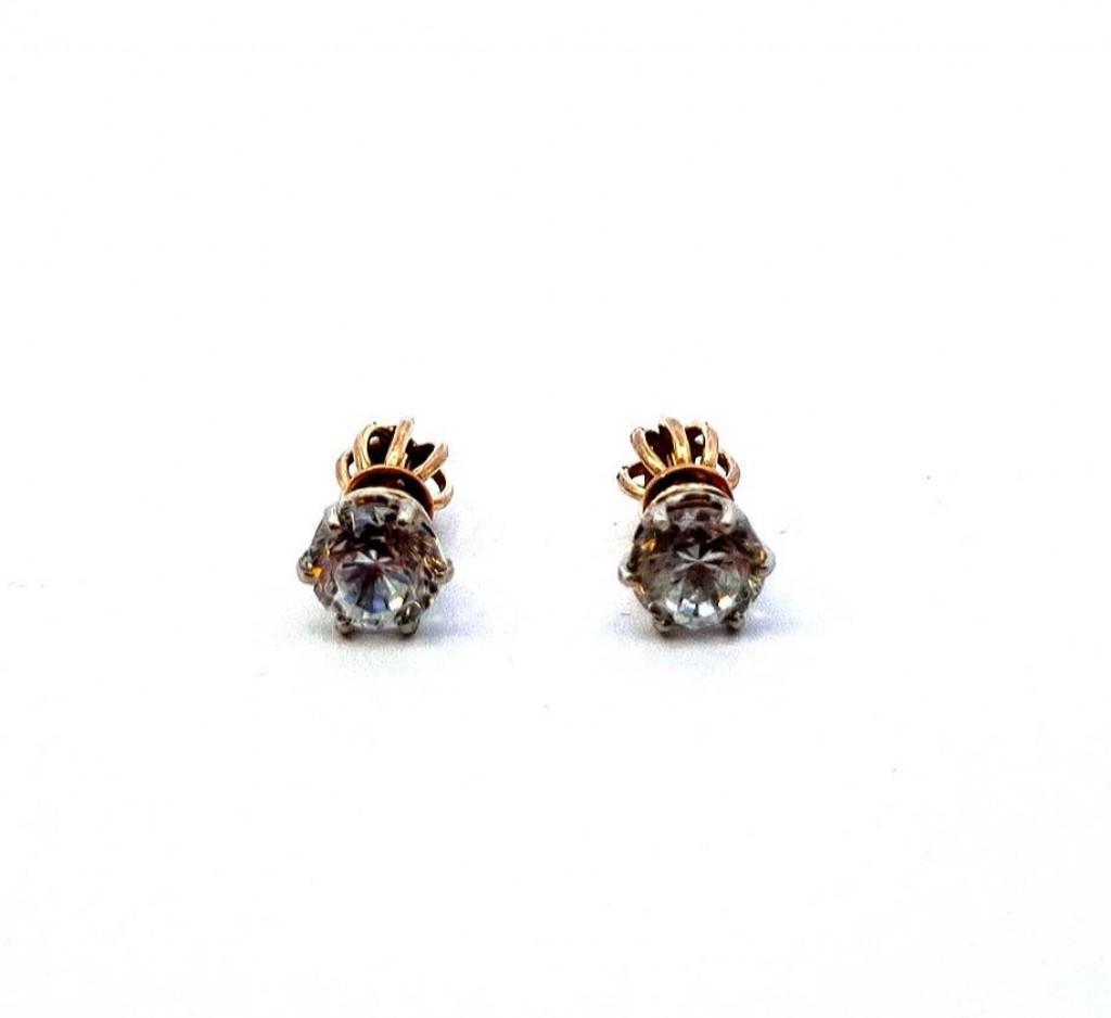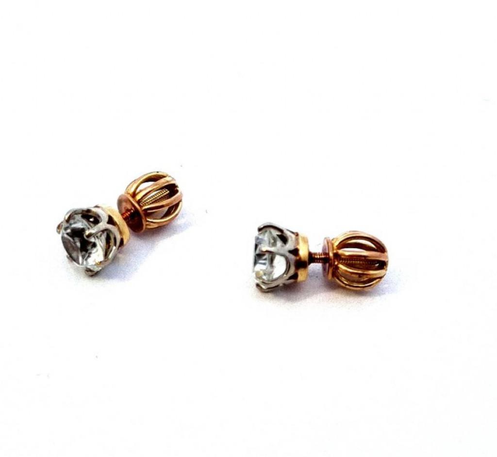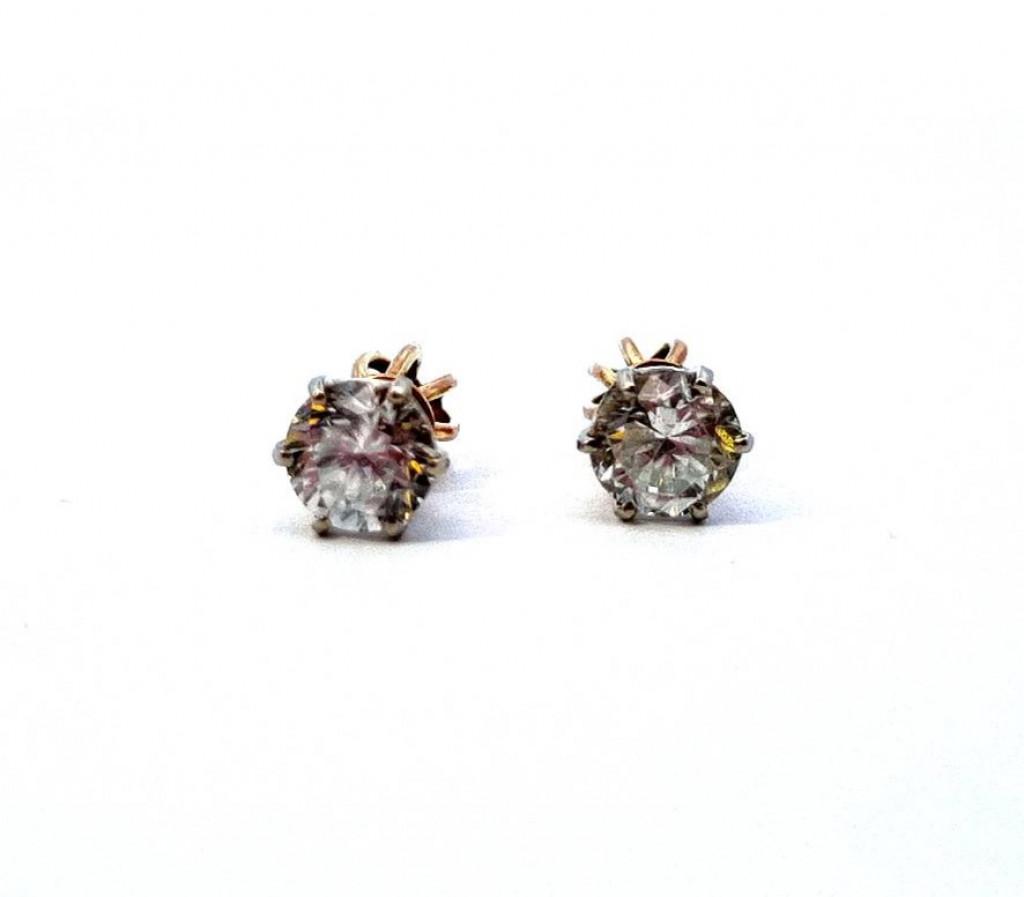 Zlaté náušnice o ryzosti 585/1000, punc labuť. Váha 1,94 g, průměr kamene 5,5 mm.