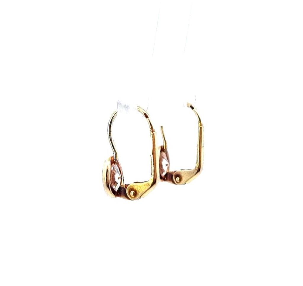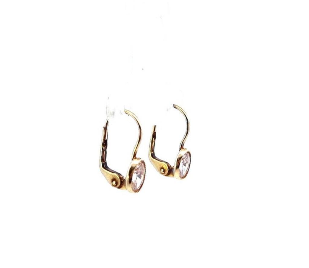 Zlaté náušnice o ryzosti 585/1000, punc labuť. Váha 1,34 g, výška 15 mm, v nejširším bodě 5 mm.